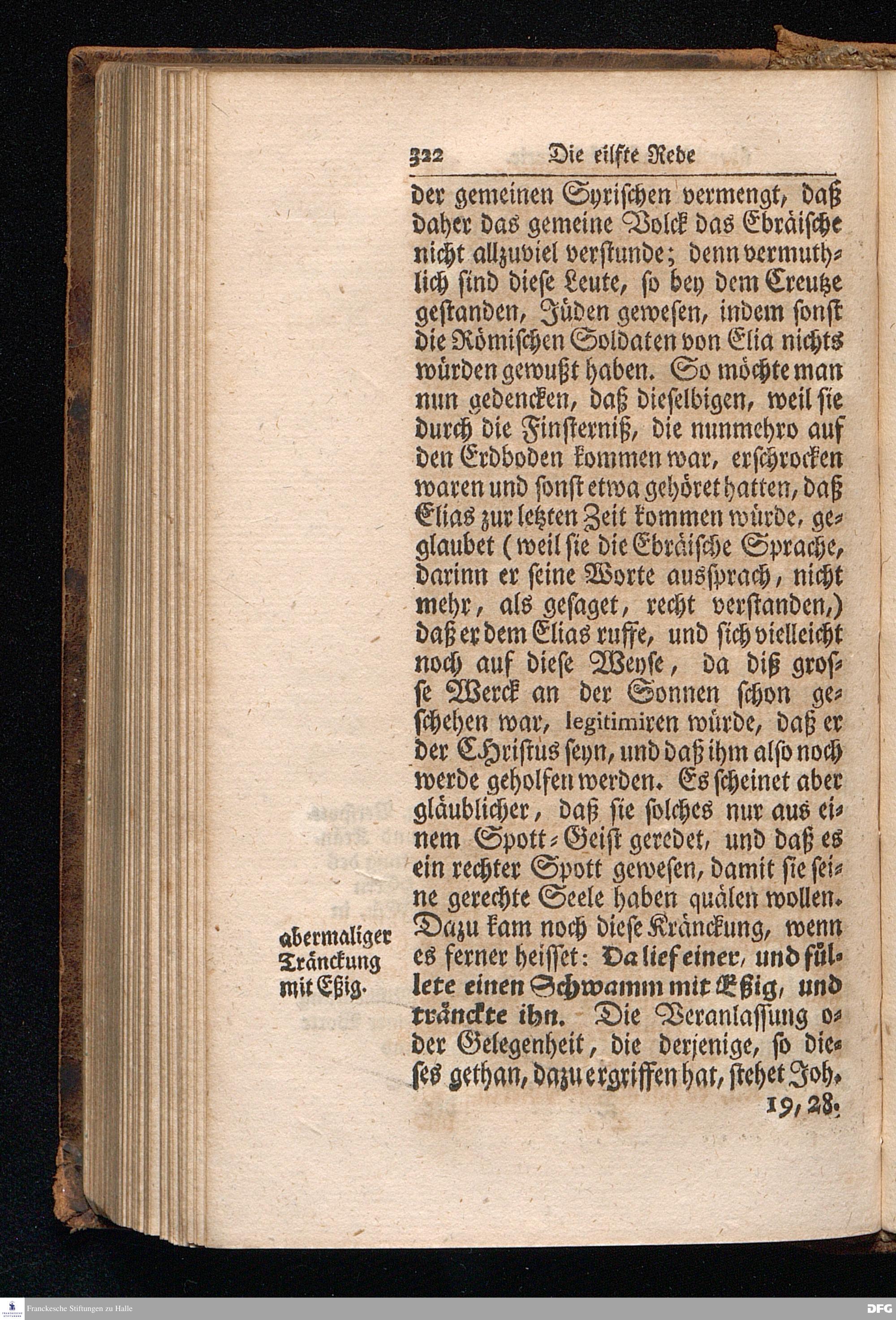 August Hermann Franckens S.Theol.Prof.Ord.und Past. Oeffentliche Reden über die Paßions=Historie / Wie dieselbe vom Evangelisten Marco im 14. und 15. Cap. beschrieben ist / gehalten Von Esto mihi bis Ostern 1712, In dem Wäysenhause zu Glaucha an Halle. Dritte Edition. HALLE, Gedruckt und verlegt im Wäysenhause, MDCCXXIV.