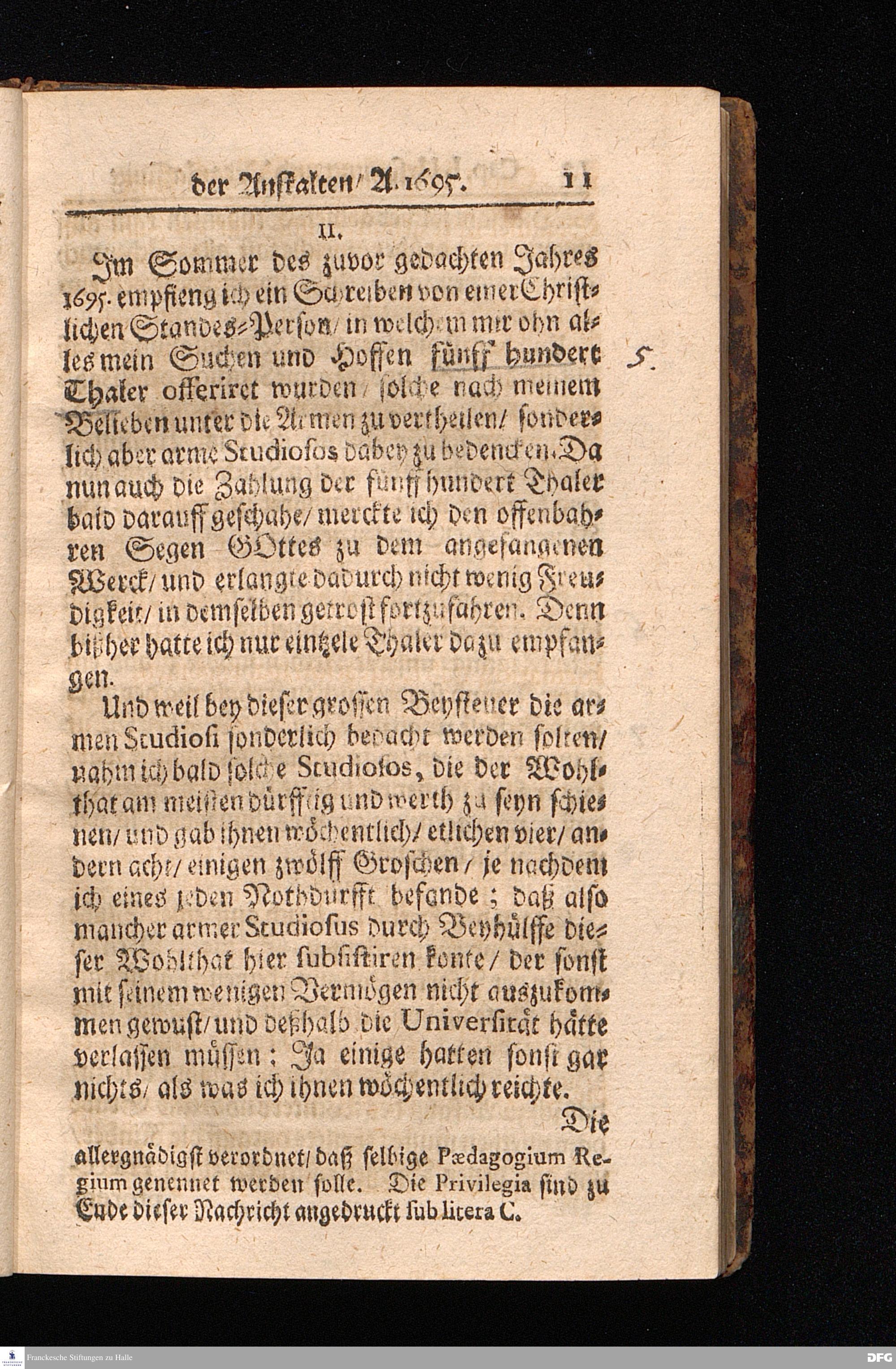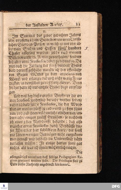 Die Fußstapfen Des noch lebenden und waltenden liebreichen und getreuen GOttes / Zur Beschämung des Unglaubens und Stärckung des Glaubens / entdecket durch eine Wahrhaffte und umständliche Nachricht von dem Wäysen=Hause und übrigen Anstalten zu Glaucha vor Halle: Welche bey gewisser Gelegenheit abgefasset / auch im Jahr 1701. zum Druck befördert / Jetzo aber Zum andernmal herausgegeben / und bis auf gegenwärtiges Jahr fortgesetzet von August Herm.Francken / SS.Theol.Prof.Publ.und Past.zu Glaucha vor Halle. Halle / in Verlegung des Waysen=Hauses MDCCVIII.