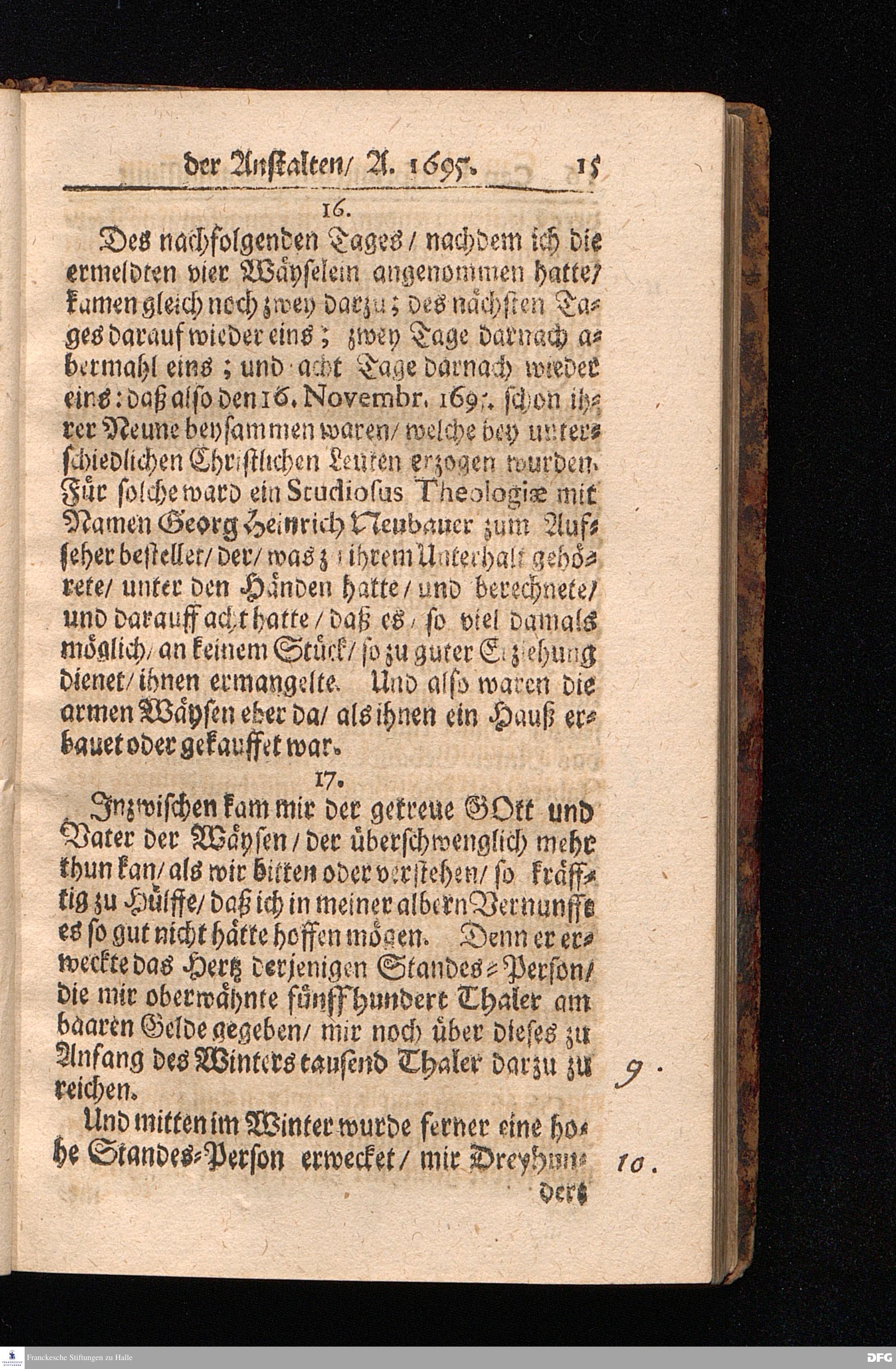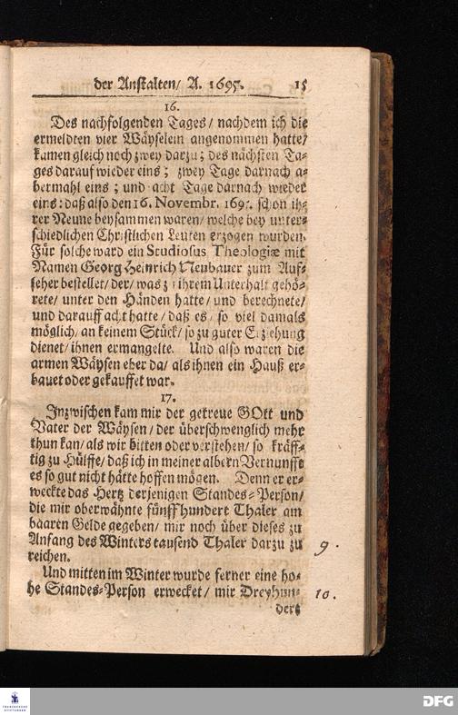 Die Fußstapfen Des noch lebenden und waltenden liebreichen und getreuen GOttes / Zur Beschämung des Unglaubens und Stärckung des Glaubens / entdecket durch eine Wahrhaffte und umständliche Nachricht von dem Wäysen=Hause und übrigen Anstalten zu Glaucha vor Halle: Welche bey gewisser Gelegenheit abgefasset / auch im Jahr 1701. zum Druck befördert / Jetzo aber Zum andernmal herausgegeben / und bis auf gegenwärtiges Jahr fortgesetzet von August Herm.Francken / SS.Theol.Prof.Publ.und Past.zu Glaucha vor Halle. Halle / in Verlegung des Waysen=Hauses MDCCVIII.