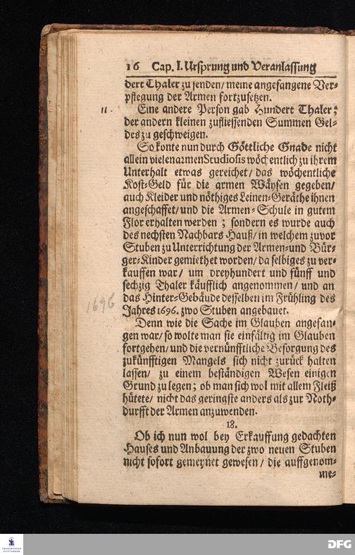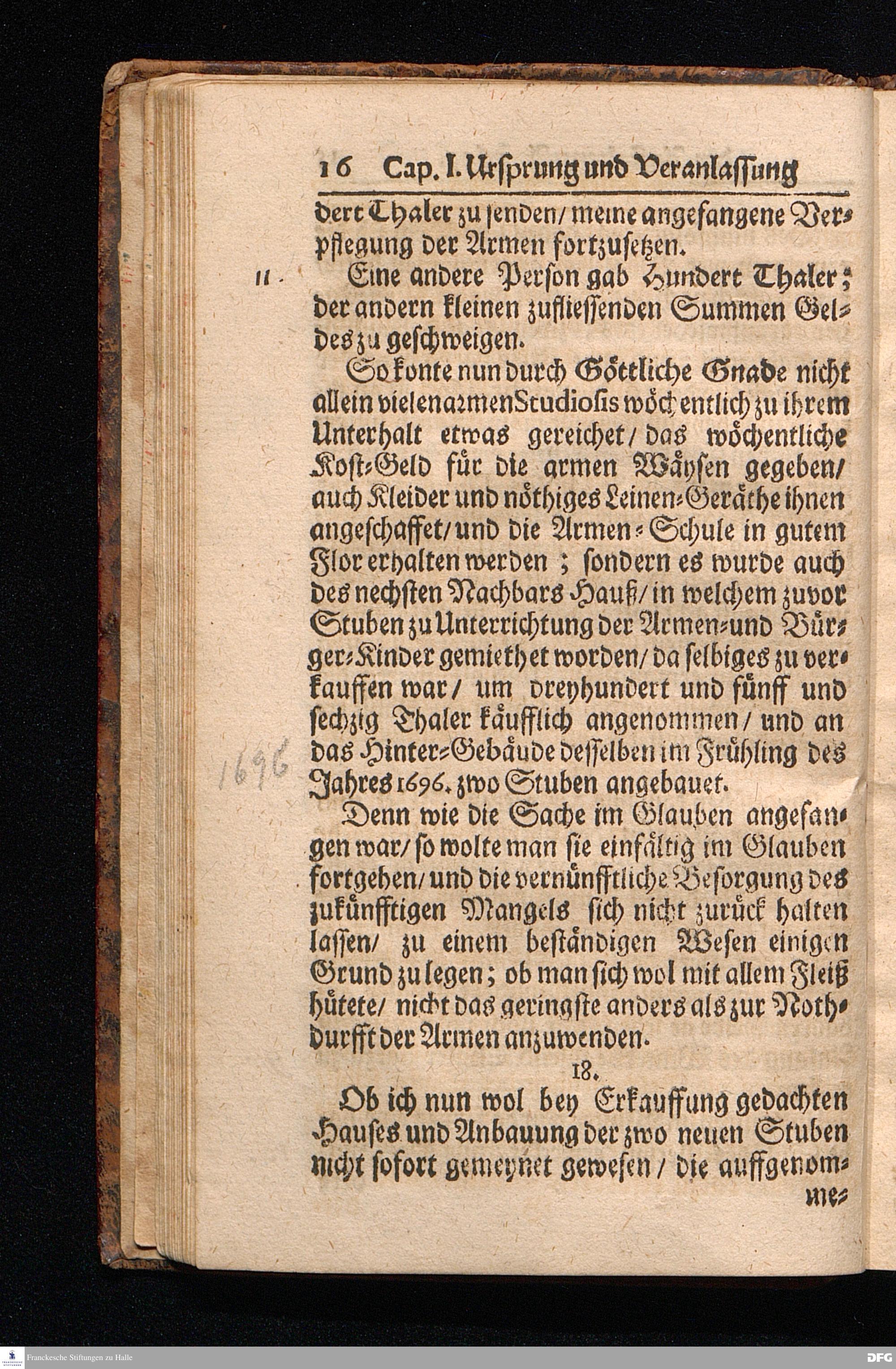 Die Fußstapfen Des noch lebenden und waltenden liebreichen und getreuen GOttes / Zur Beschämung des Unglaubens und Stärckung des Glaubens / entdecket durch eine Wahrhaffte und umständliche Nachricht von dem Wäysen=Hause und übrigen Anstalten zu Glaucha vor Halle: Welche bey gewisser Gelegenheit abgefasset / auch im Jahr 1701. zum Druck befördert / Jetzo aber Zum andernmal herausgegeben / und bis auf gegenwärtiges Jahr fortgesetzet von August Herm.Francken / SS.Theol.Prof.Publ.und Past.zu Glaucha vor Halle. Halle / in Verlegung des Waysen=Hauses MDCCVIII.
