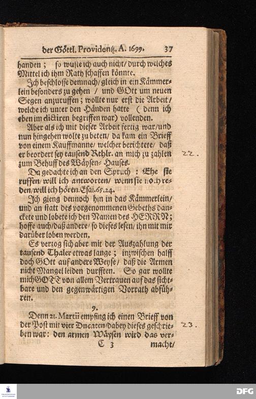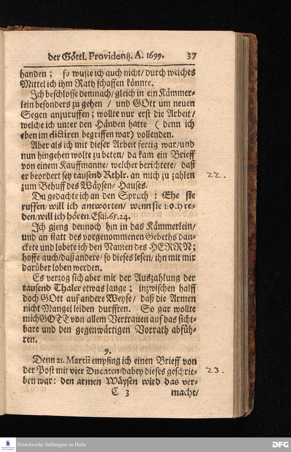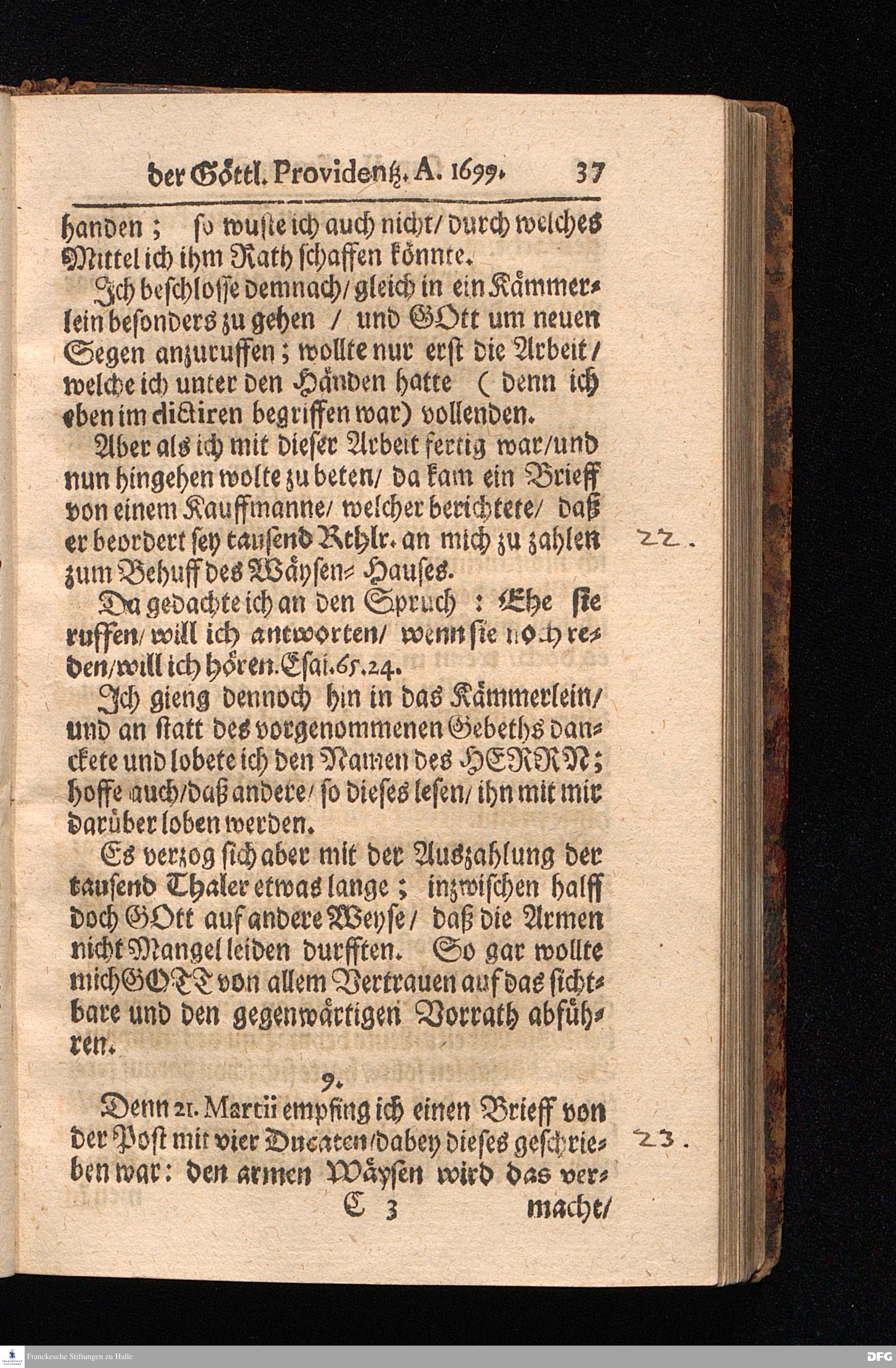 Die Fußstapfen Des noch lebenden und waltenden liebreichen und getreuen GOttes / Zur Beschämung des Unglaubens und Stärckung des Glaubens / entdecket durch eine Wahrhaffte und umständliche Nachricht von dem Wäysen=Hause und übrigen Anstalten zu Glaucha vor Halle: Welche bey gewisser Gelegenheit abgefasset / auch im Jahr 1701. zum Druck befördert / Jetzo aber Zum andernmal herausgegeben / und bis auf gegenwärtiges Jahr fortgesetzet von August Herm.Francken / SS.Theol.Prof.Publ.und Past.zu Glaucha vor Halle. Halle / in Verlegung des Waysen=Hauses MDCCVIII.