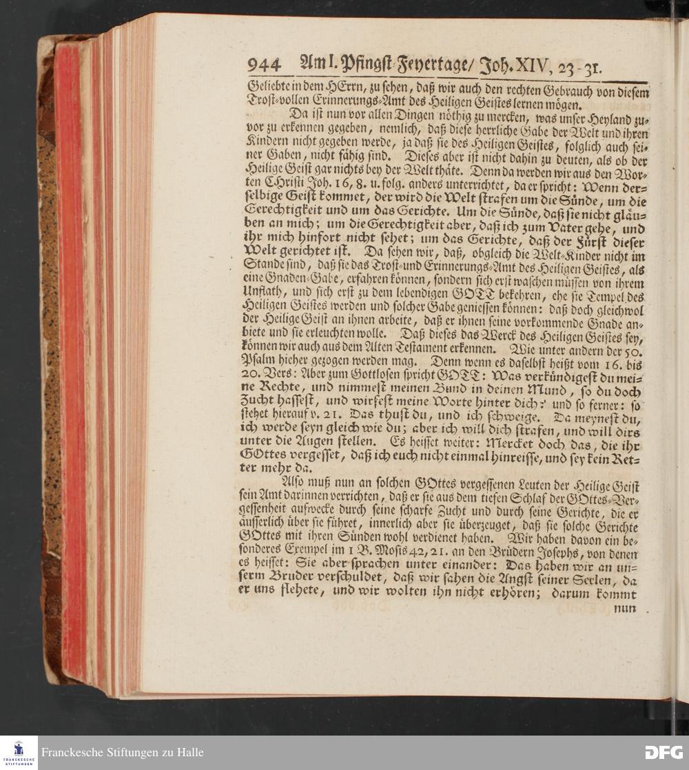 August Hermann Franckens, S.Theol.Prof.und Past. Sonn= und Fest=Tags=Predigten / Welche Theils in Halle, theils an verschiedenen auswärtigen Oertern, von wichtigen und auserlesenen Materien gehalten worden, Nebst Vorbereitung auf die hohen Feste und nützlichen Registern. Dritte Auflage. HALLE, gedruckt und verlegt im Wäysen=Hause MDCCXL. Mit Königl.Preuß.und Churfl.Brandenb.Privileg.