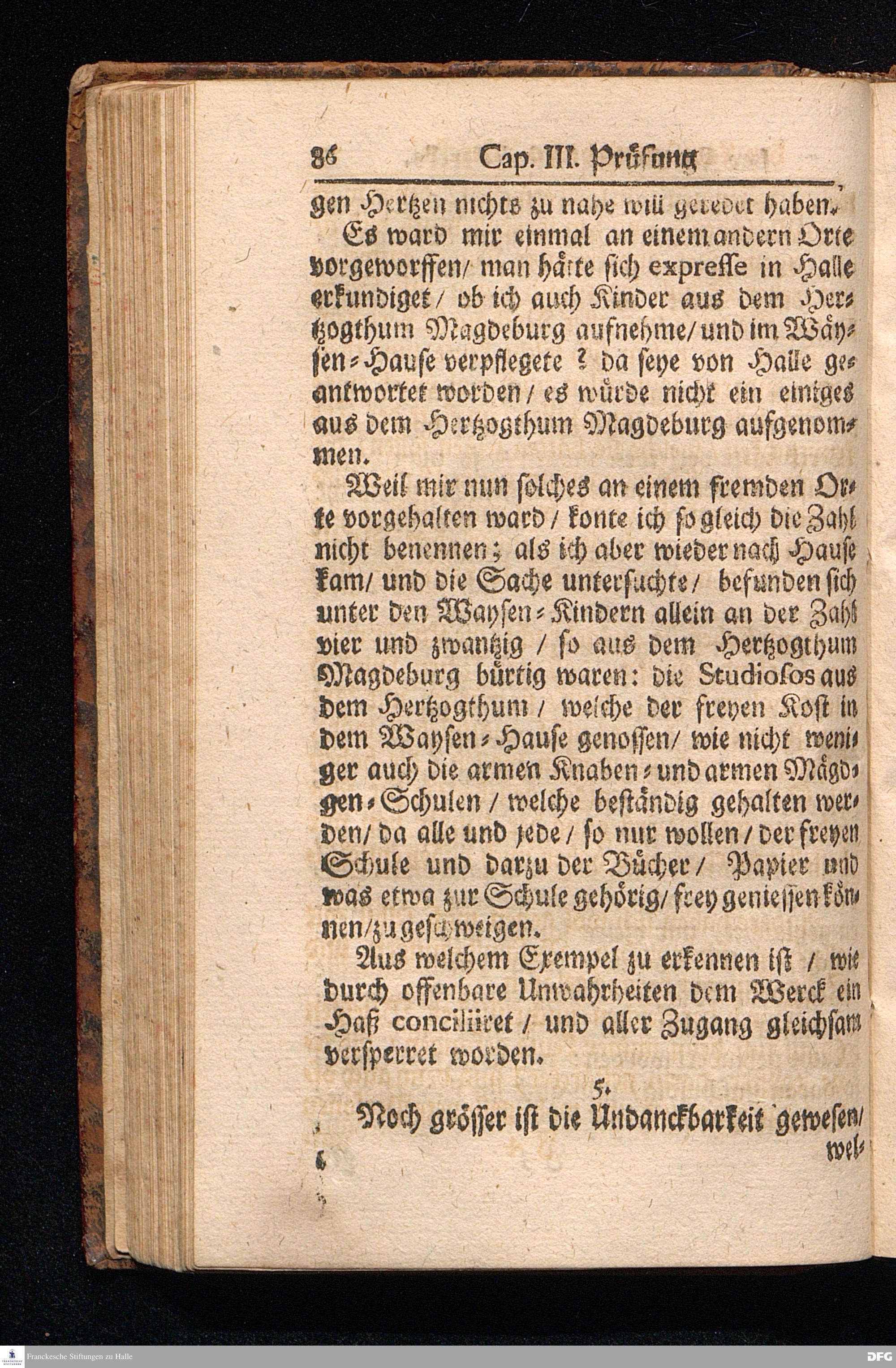 Die Fußstapfen Des noch lebenden und waltenden liebreichen und getreuen GOttes / Zur Beschämung des Unglaubens und Stärckung des Glaubens / entdecket durch eine Wahrhaffte und umständliche Nachricht von dem Wäysen=Hause und übrigen Anstalten zu Glaucha vor Halle: Welche bey gewisser Gelegenheit abgefasset / auch im Jahr 1701. zum Druck befördert / Jetzo aber Zum andernmal herausgegeben / und bis auf gegenwärtiges Jahr fortgesetzet von August Herm.Francken / SS.Theol.Prof.Publ.und Past.zu Glaucha vor Halle. Halle / in Verlegung des Waysen=Hauses MDCCVIII.