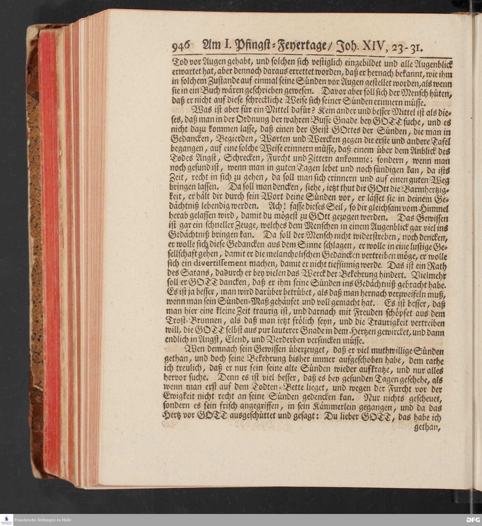 August Hermann Franckens, S.Theol.Prof.und Past. Sonn= und Fest=Tags=Predigten / Welche Theils in Halle, theils an verschiedenen auswärtigen Oertern, von wichtigen und auserlesenen Materien gehalten worden, Nebst Vorbereitung auf die hohen Feste und nützlichen Registern. Dritte Auflage. HALLE, gedruckt und verlegt im Wäysen=Hause MDCCXL. Mit Königl.Preuß.und Churfl.Brandenb.Privileg.