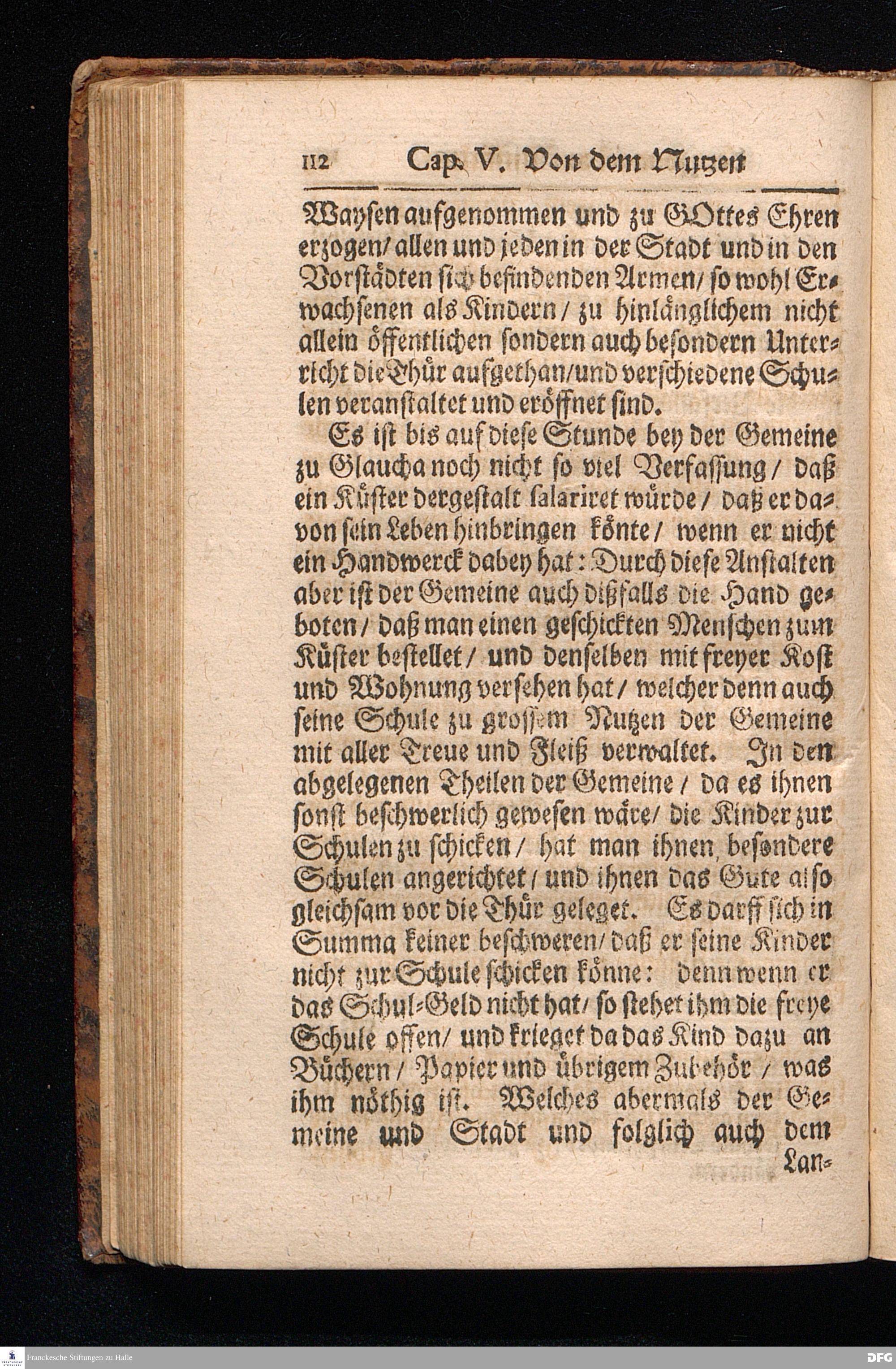 Die Fußstapfen Des noch lebenden und waltenden liebreichen und getreuen GOttes / Zur Beschämung des Unglaubens und Stärckung des Glaubens / entdecket durch eine Wahrhaffte und umständliche Nachricht von dem Wäysen=Hause und übrigen Anstalten zu Glaucha vor Halle: Welche bey gewisser Gelegenheit abgefasset / auch im Jahr 1701. zum Druck befördert / Jetzo aber Zum andernmal herausgegeben / und bis auf gegenwärtiges Jahr fortgesetzet von August Herm.Francken / SS.Theol.Prof.Publ.und Past.zu Glaucha vor Halle. Halle / in Verlegung des Waysen=Hauses MDCCVIII.