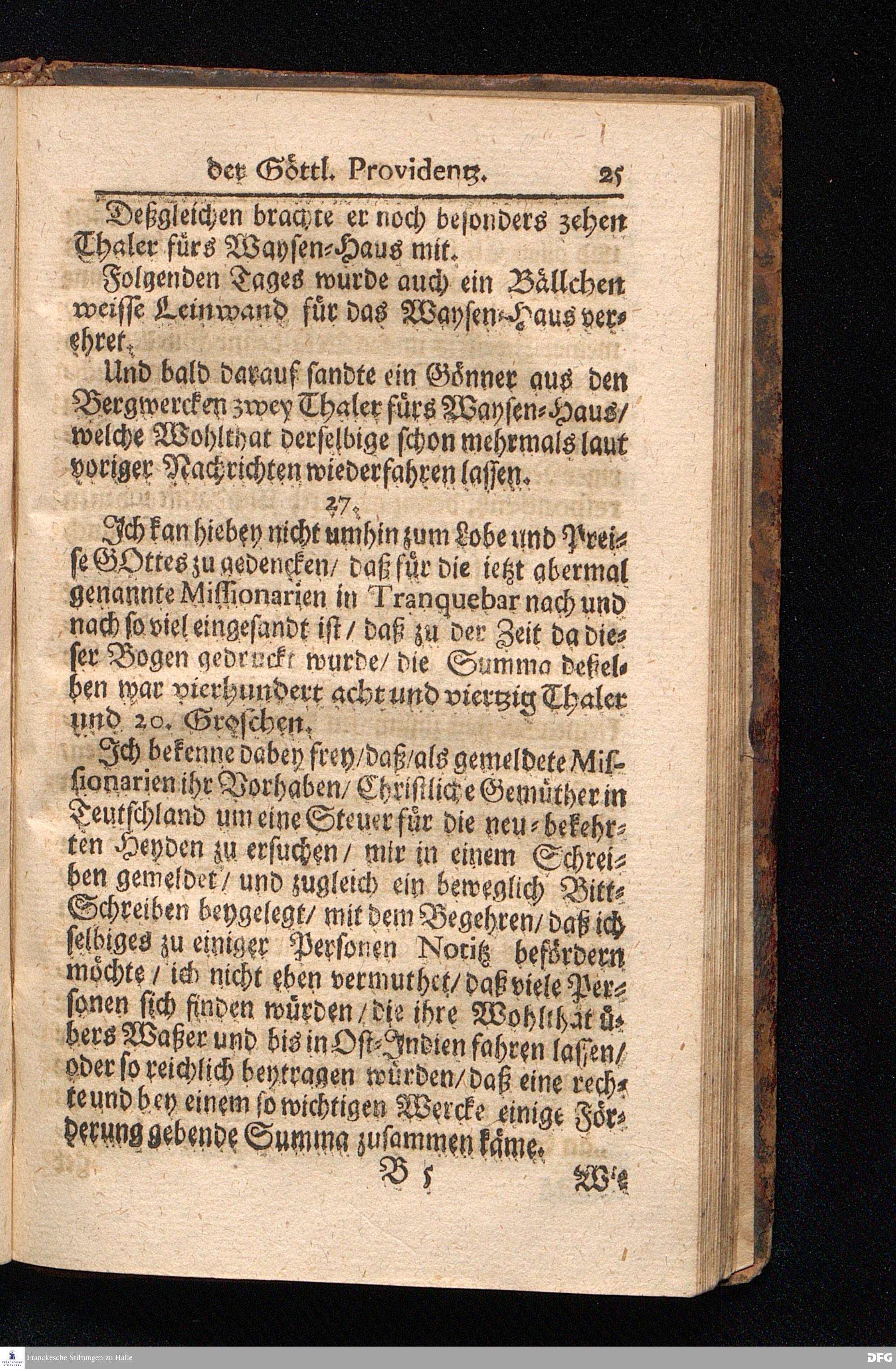 Die Fußstapfen Des noch lebenden und waltenden liebreichen und getreuen GOttes / Zur Beschämung des Unglaubens und Stärckung des Glaubens / entdecket durch eine Wahrhaffte und umständliche Nachricht von dem Wäysen=Hause und übrigen Anstalten zu Glaucha vor Halle: Welche bey gewisser Gelegenheit abgefasset / auch im Jahr 1701. zum Druck befördert / Jetzo aber Zum andernmal herausgegeben / und bis auf gegenwärtiges Jahr fortgesetzet von August Herm.Francken / SS.Theol.Prof.Publ.und Past.zu Glaucha vor Halle. Halle / in Verlegung des Waysen=Hauses MDCCVIII.