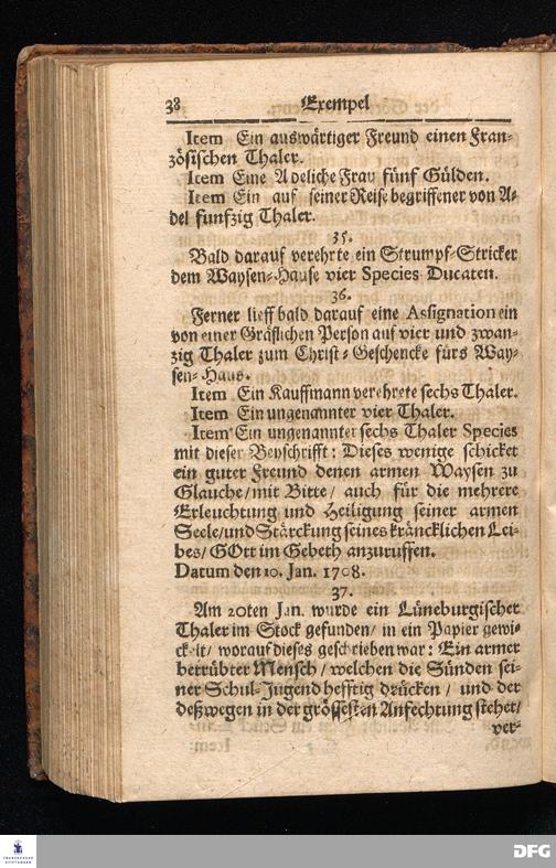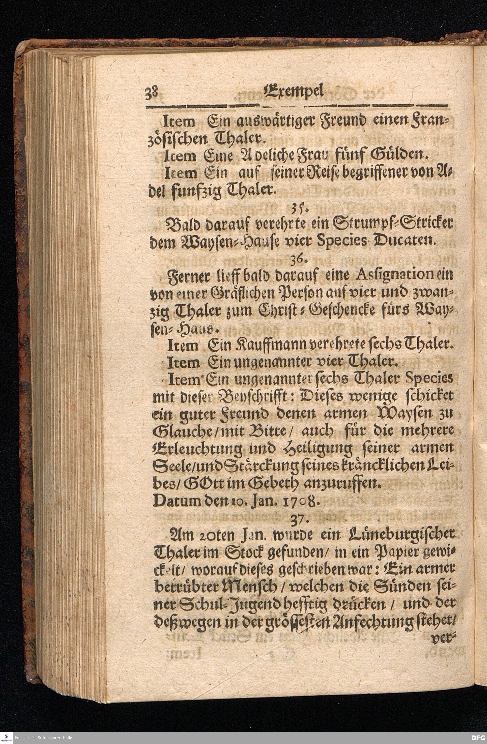 Die Fußstapfen Des noch lebenden und waltenden liebreichen und getreuen GOttes / Zur Beschämung des Unglaubens und Stärckung des Glaubens / entdecket durch eine Wahrhaffte und umständliche Nachricht von dem Wäysen=Hause und übrigen Anstalten zu Glaucha vor Halle: Welche bey gewisser Gelegenheit abgefasset / auch im Jahr 1701. zum Druck befördert / Jetzo aber Zum andernmal herausgegeben / und bis auf gegenwärtiges Jahr fortgesetzet von August Herm.Francken / SS.Theol.Prof.Publ.und Past.zu Glaucha vor Halle. Halle / in Verlegung des Waysen=Hauses MDCCVIII.