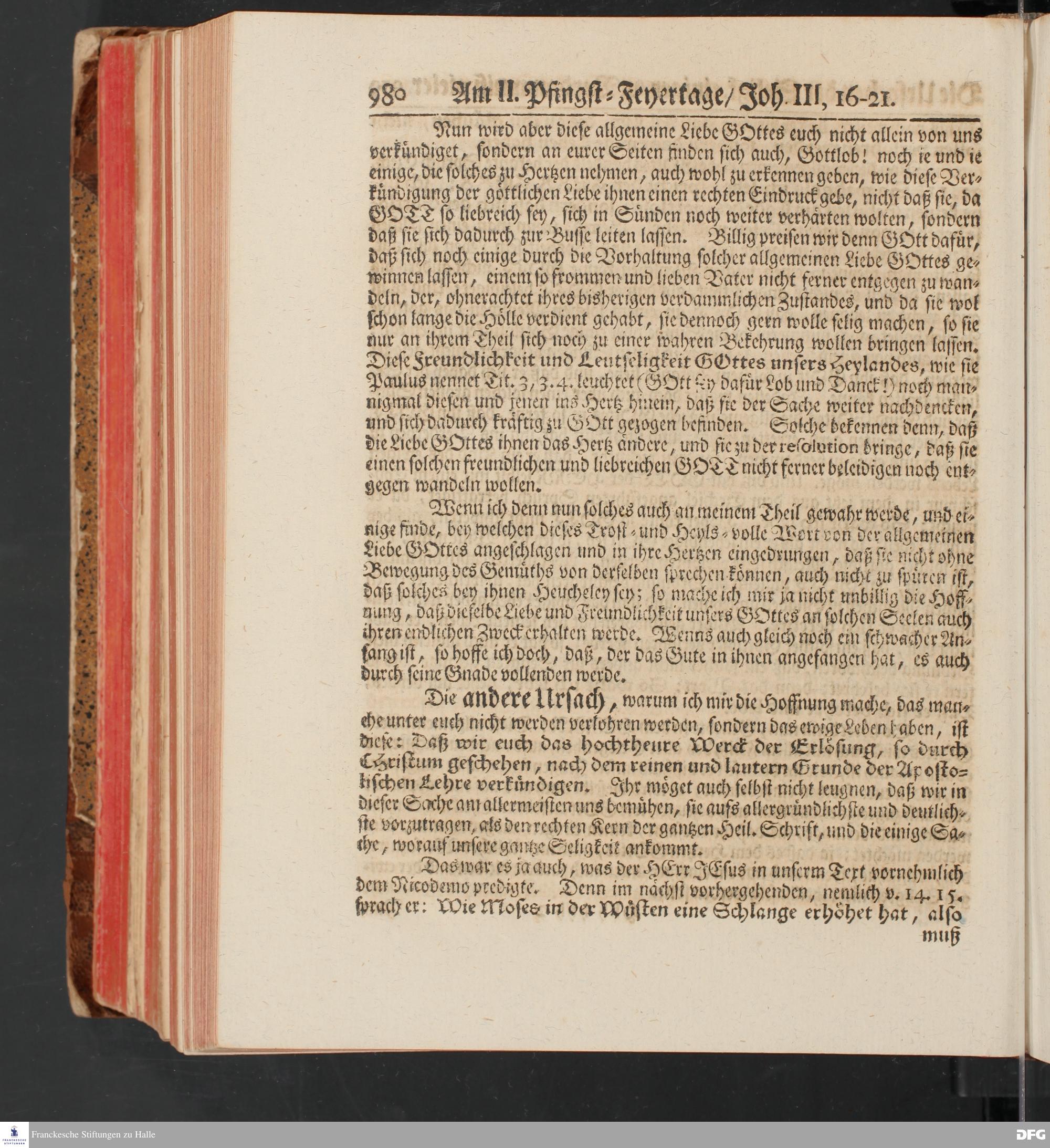 August Hermann Franckens, S.Theol.Prof.und Past. Sonn= und Fest=Tags=Predigten / Welche Theils in Halle, theils an verschiedenen auswärtigen Oertern, von wichtigen und auserlesenen Materien gehalten worden, Nebst Vorbereitung auf die hohen Feste und nützlichen Registern. Dritte Auflage. HALLE, gedruckt und verlegt im Wäysen=Hause MDCCXL. Mit Königl.Preuß.und Churfl.Brandenb.Privileg.