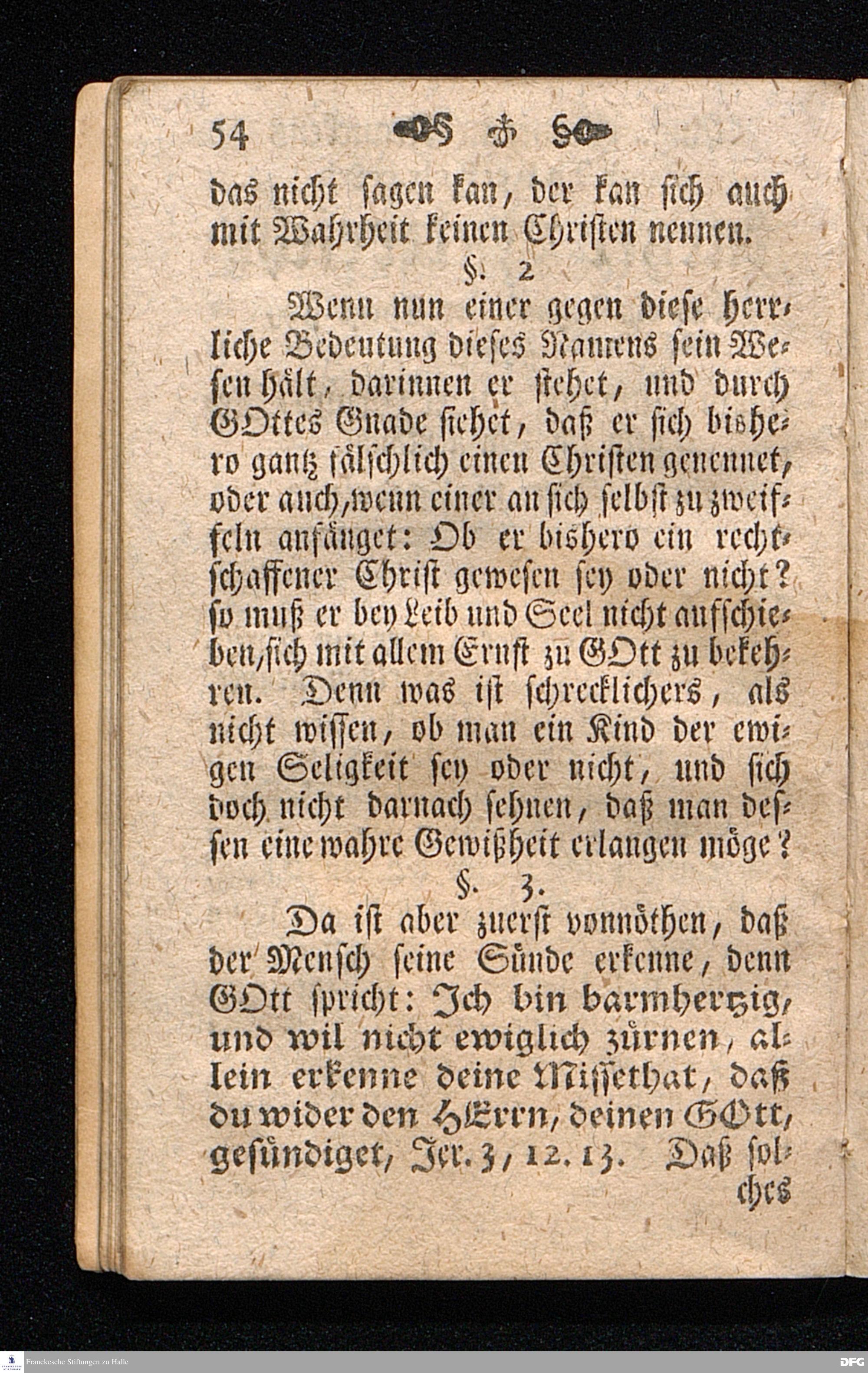 Aug. Hermann Franckens P.m.S.Th.P.et P.Ulr.et Sch. kurtzer Unterricht was ein begnadigter Christ sey, nebst einem Anhange einiger Grund=Regeln im Christenthum. Zum achten mal gedruckt. [Kopftitel]