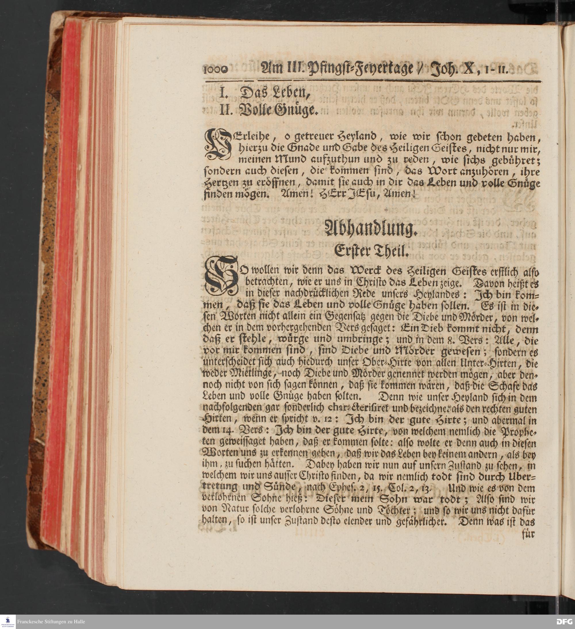 August Hermann Franckens, S.Theol.Prof.und Past. Sonn= und Fest=Tags=Predigten / Welche Theils in Halle, theils an verschiedenen auswärtigen Oertern, von wichtigen und auserlesenen Materien gehalten worden, Nebst Vorbereitung auf die hohen Feste und nützlichen Registern. Dritte Auflage. HALLE, gedruckt und verlegt im Wäysen=Hause MDCCXL. Mit Königl.Preuß.und Churfl.Brandenb.Privileg.