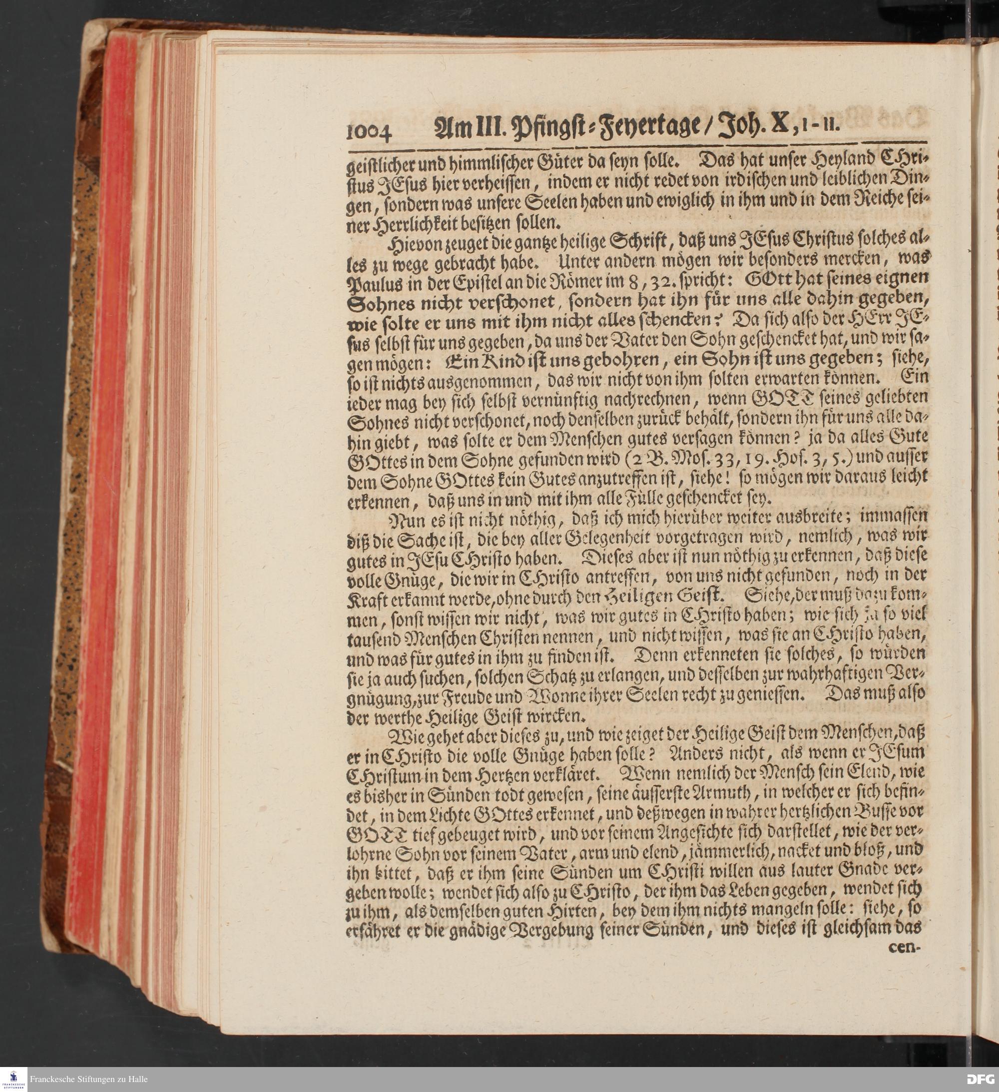 August Hermann Franckens, S.Theol.Prof.und Past. Sonn= und Fest=Tags=Predigten / Welche Theils in Halle, theils an verschiedenen auswärtigen Oertern, von wichtigen und auserlesenen Materien gehalten worden, Nebst Vorbereitung auf die hohen Feste und nützlichen Registern. Dritte Auflage. HALLE, gedruckt und verlegt im Wäysen=Hause MDCCXL. Mit Königl.Preuß.und Churfl.Brandenb.Privileg.
