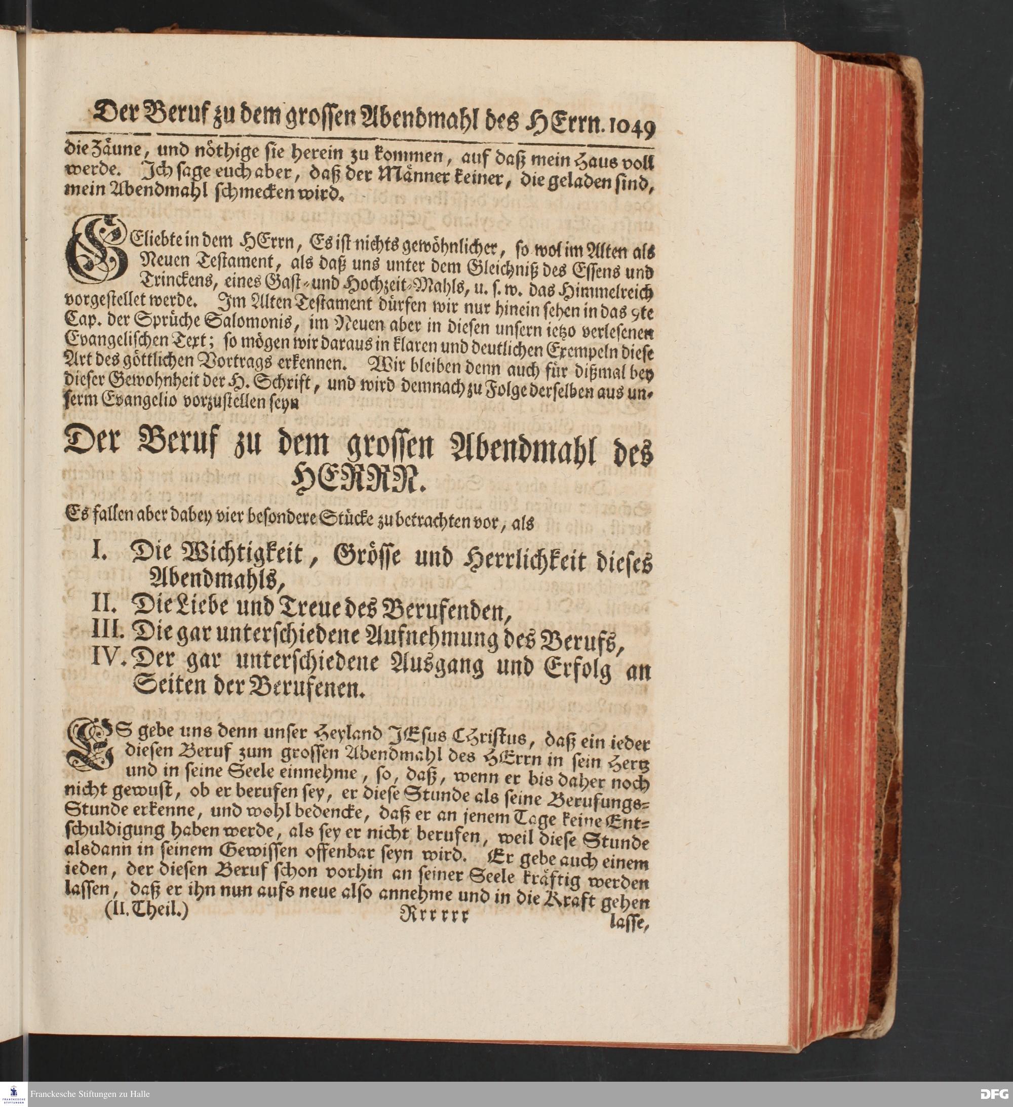 August Hermann Franckens, S.Theol.Prof.und Past. Sonn= und Fest=Tags=Predigten / Welche Theils in Halle, theils an verschiedenen auswärtigen Oertern, von wichtigen und auserlesenen Materien gehalten worden, Nebst Vorbereitung auf die hohen Feste und nützlichen Registern. Dritte Auflage. HALLE, gedruckt und verlegt im Wäysen=Hause MDCCXL. Mit Königl.Preuß.und Churfl.Brandenb.Privileg.