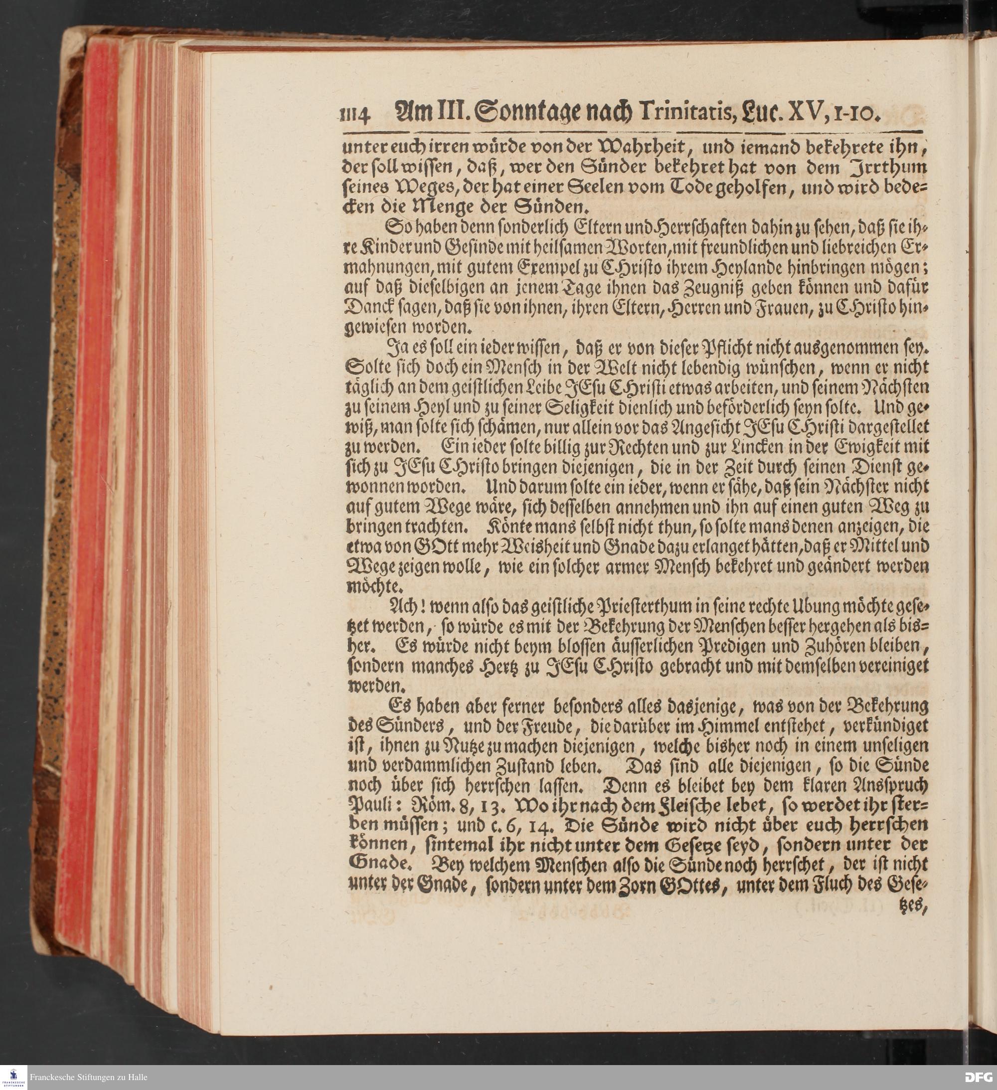 August Hermann Franckens, S.Theol.Prof.und Past. Sonn= und Fest=Tags=Predigten / Welche Theils in Halle, theils an verschiedenen auswärtigen Oertern, von wichtigen und auserlesenen Materien gehalten worden, Nebst Vorbereitung auf die hohen Feste und nützlichen Registern. Dritte Auflage. HALLE, gedruckt und verlegt im Wäysen=Hause MDCCXL. Mit Königl.Preuß.und Churfl.Brandenb.Privileg.