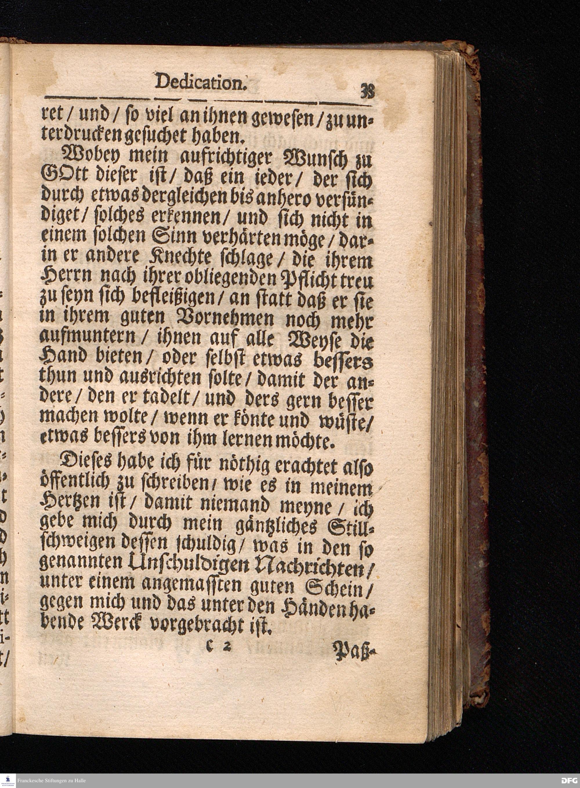 Segens=volle Fußstapfen des noch lebenden und waltenden liebreichen und getreuen GOttes / Zur Beschämung des Unglaubens und Stärckung des Glaubens entdecket durch eine wahrhafte und umständliche Nachricht von dem Wäysen=Hause und übrigen Anstalten zu Glaucha vor Halle: Welche im Jahr 1701. zum Druck befördert; ietzo aber zum dritten mal ediret / und bis auf gegenwärtiges Jahr fortgesetzet von August.Herm.Francken / S.Theol.Prof.und Past. Halle / in Verlegung des Wäysen=hauses / MDCCIX.