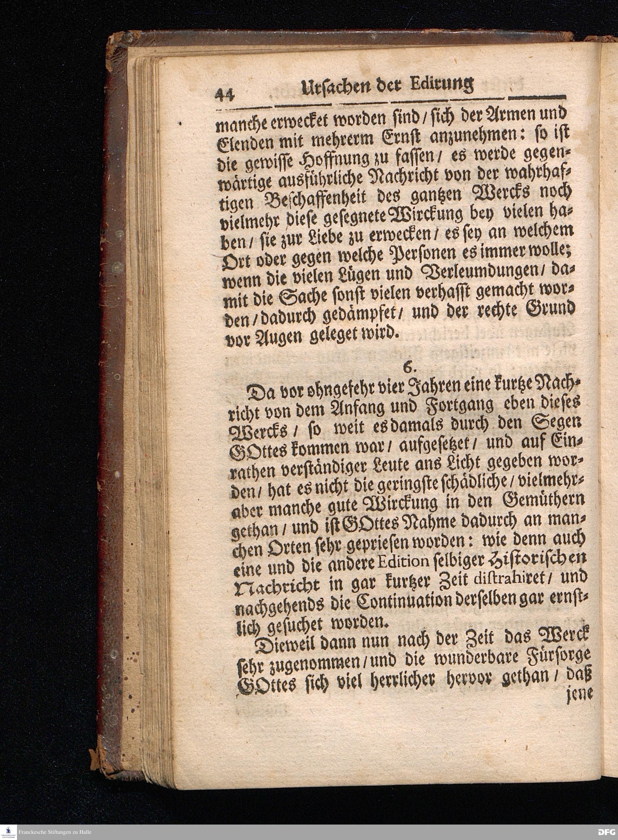 Segens=volle Fußstapfen des noch lebenden und waltenden liebreichen und getreuen GOttes / Zur Beschämung des Unglaubens und Stärckung des Glaubens entdecket durch eine wahrhafte und umständliche Nachricht von dem Wäysen=Hause und übrigen Anstalten zu Glaucha vor Halle: Welche im Jahr 1701. zum Druck befördert; ietzo aber zum dritten mal ediret / und bis auf gegenwärtiges Jahr fortgesetzet von August.Herm.Francken / S.Theol.Prof.und Past. Halle / in Verlegung des Wäysen=hauses / MDCCIX.