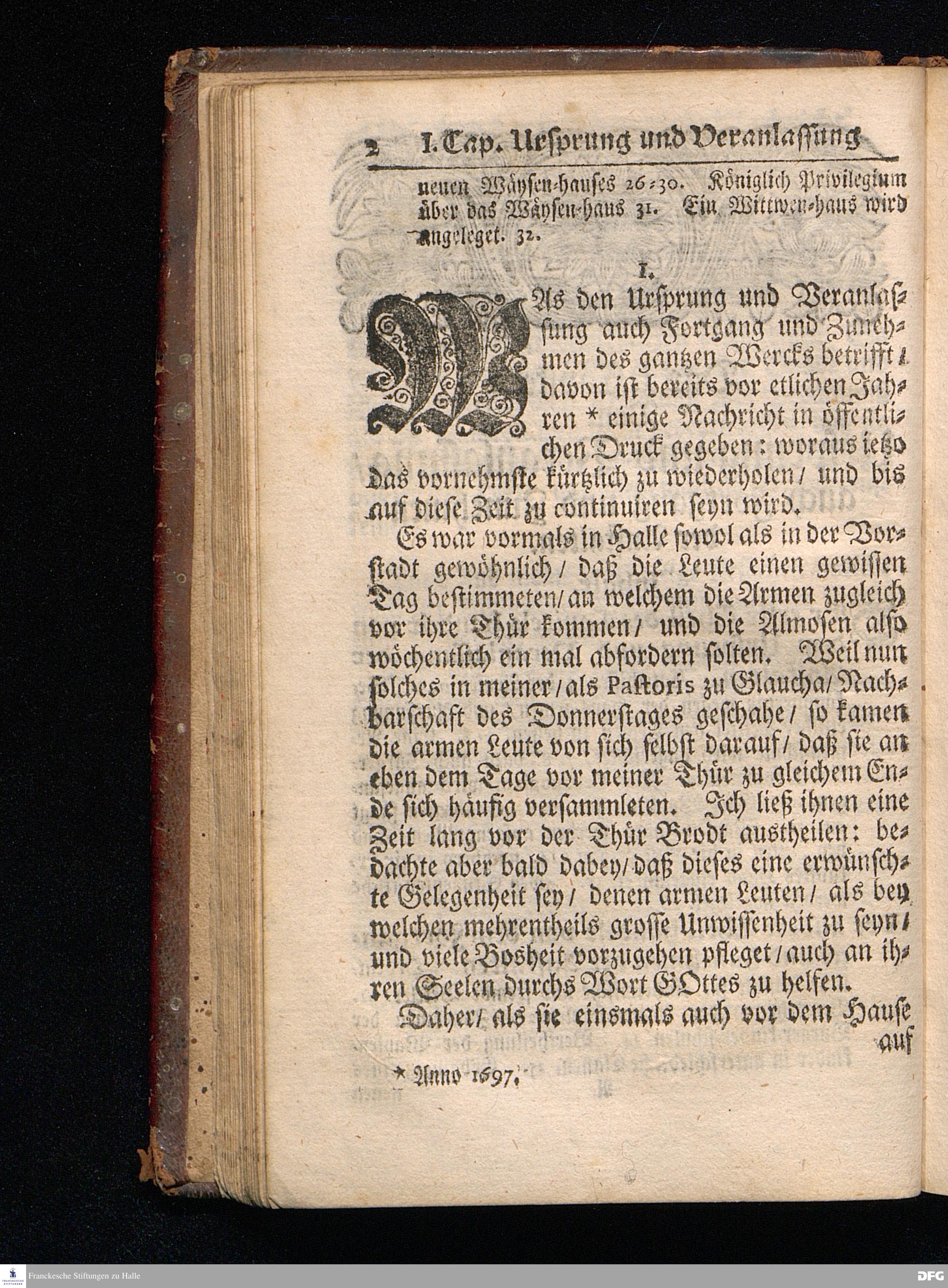 Segens=volle Fußstapfen des noch lebenden und waltenden liebreichen und getreuen GOttes / Zur Beschämung des Unglaubens und Stärckung des Glaubens entdecket durch eine wahrhafte und umständliche Nachricht von dem Wäysen=Hause und übrigen Anstalten zu Glaucha vor Halle: Welche im Jahr 1701. zum Druck befördert; ietzo aber zum dritten mal ediret / und bis auf gegenwärtiges Jahr fortgesetzet von August.Herm.Francken / S.Theol.Prof.und Past. Halle / in Verlegung des Wäysen=hauses / MDCCIX.