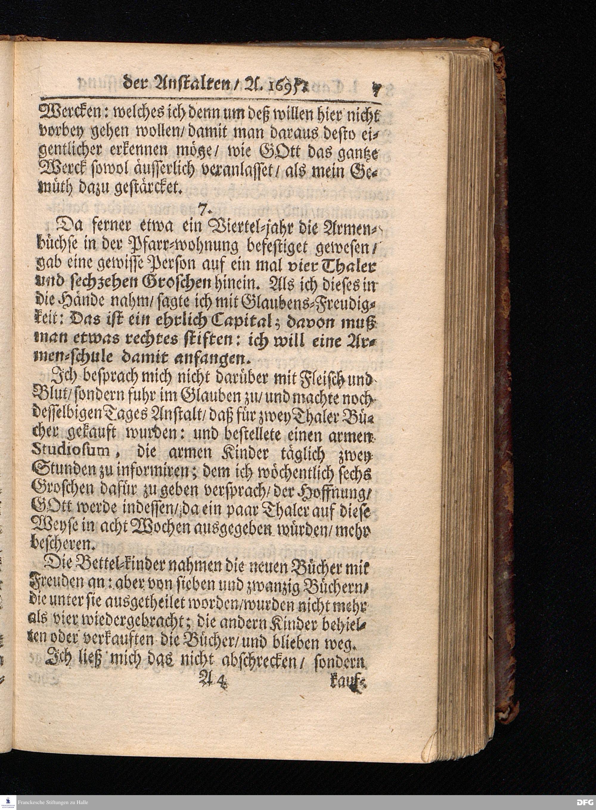 Segens=volle Fußstapfen des noch lebenden und waltenden liebreichen und getreuen GOttes / Zur Beschämung des Unglaubens und Stärckung des Glaubens entdecket durch eine wahrhafte und umständliche Nachricht von dem Wäysen=Hause und übrigen Anstalten zu Glaucha vor Halle: Welche im Jahr 1701. zum Druck befördert; ietzo aber zum dritten mal ediret / und bis auf gegenwärtiges Jahr fortgesetzet von August.Herm.Francken / S.Theol.Prof.und Past. Halle / in Verlegung des Wäysen=hauses / MDCCIX.