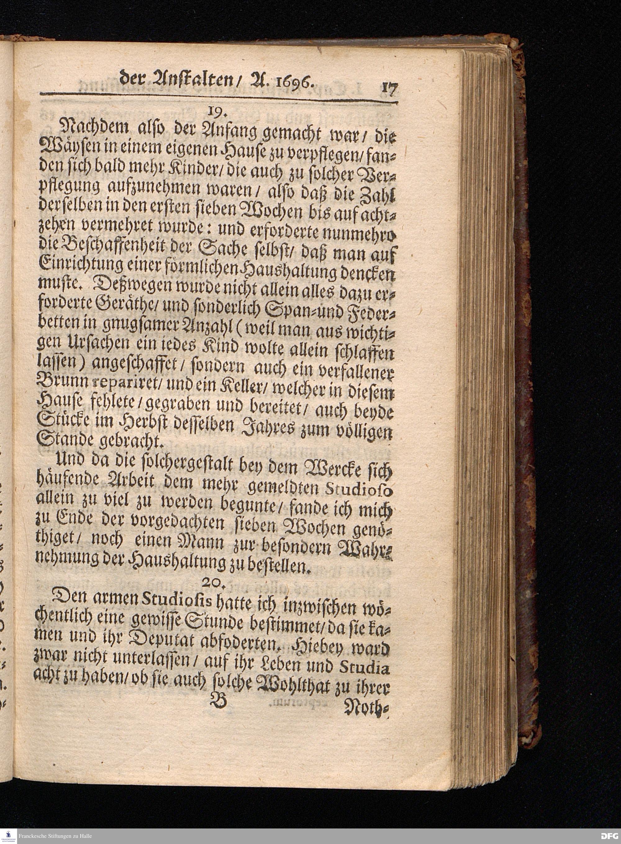 Segens=volle Fußstapfen des noch lebenden und waltenden liebreichen und getreuen GOttes / Zur Beschämung des Unglaubens und Stärckung des Glaubens entdecket durch eine wahrhafte und umständliche Nachricht von dem Wäysen=Hause und übrigen Anstalten zu Glaucha vor Halle: Welche im Jahr 1701. zum Druck befördert; ietzo aber zum dritten mal ediret / und bis auf gegenwärtiges Jahr fortgesetzet von August.Herm.Francken / S.Theol.Prof.und Past. Halle / in Verlegung des Wäysen=hauses / MDCCIX.