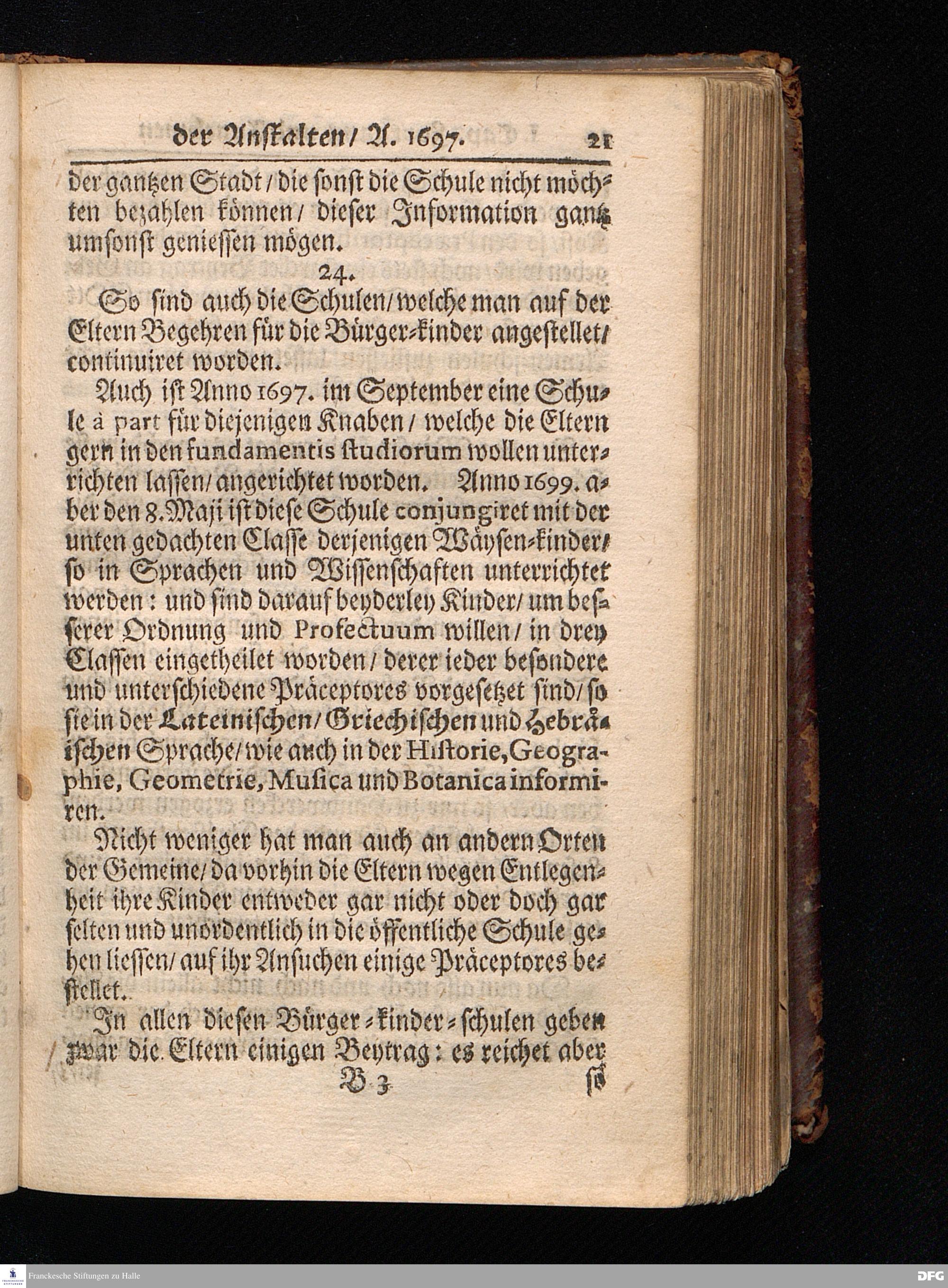 Segens=volle Fußstapfen des noch lebenden und waltenden liebreichen und getreuen GOttes / Zur Beschämung des Unglaubens und Stärckung des Glaubens entdecket durch eine wahrhafte und umständliche Nachricht von dem Wäysen=Hause und übrigen Anstalten zu Glaucha vor Halle: Welche im Jahr 1701. zum Druck befördert; ietzo aber zum dritten mal ediret / und bis auf gegenwärtiges Jahr fortgesetzet von August.Herm.Francken / S.Theol.Prof.und Past. Halle / in Verlegung des Wäysen=hauses / MDCCIX.