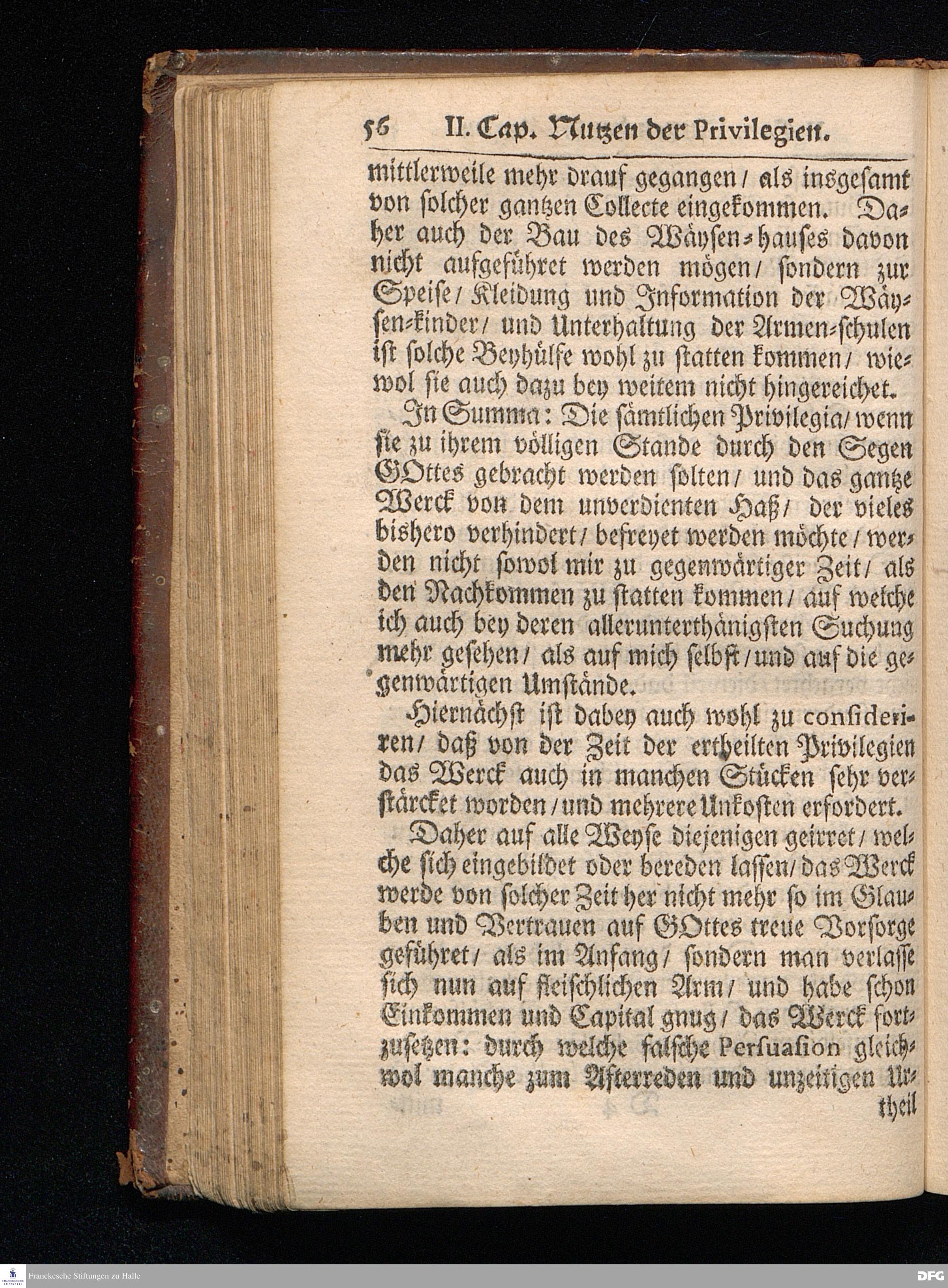 Segens=volle Fußstapfen des noch lebenden und waltenden liebreichen und getreuen GOttes / Zur Beschämung des Unglaubens und Stärckung des Glaubens entdecket durch eine wahrhafte und umständliche Nachricht von dem Wäysen=Hause und übrigen Anstalten zu Glaucha vor Halle: Welche im Jahr 1701. zum Druck befördert; ietzo aber zum dritten mal ediret / und bis auf gegenwärtiges Jahr fortgesetzet von August.Herm.Francken / S.Theol.Prof.und Past. Halle / in Verlegung des Wäysen=hauses / MDCCIX.