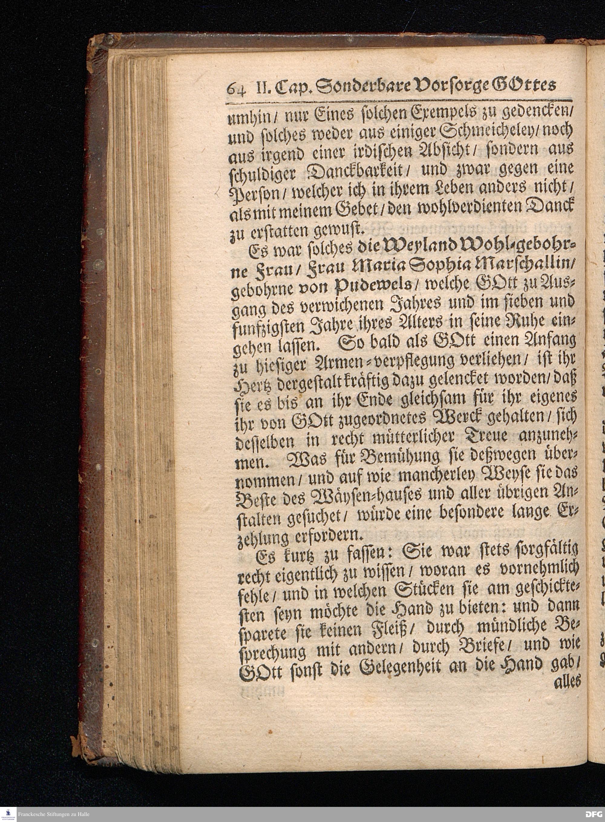 Segens=volle Fußstapfen des noch lebenden und waltenden liebreichen und getreuen GOttes / Zur Beschämung des Unglaubens und Stärckung des Glaubens entdecket durch eine wahrhafte und umständliche Nachricht von dem Wäysen=Hause und übrigen Anstalten zu Glaucha vor Halle: Welche im Jahr 1701. zum Druck befördert; ietzo aber zum dritten mal ediret / und bis auf gegenwärtiges Jahr fortgesetzet von August.Herm.Francken / S.Theol.Prof.und Past. Halle / in Verlegung des Wäysen=hauses / MDCCIX.