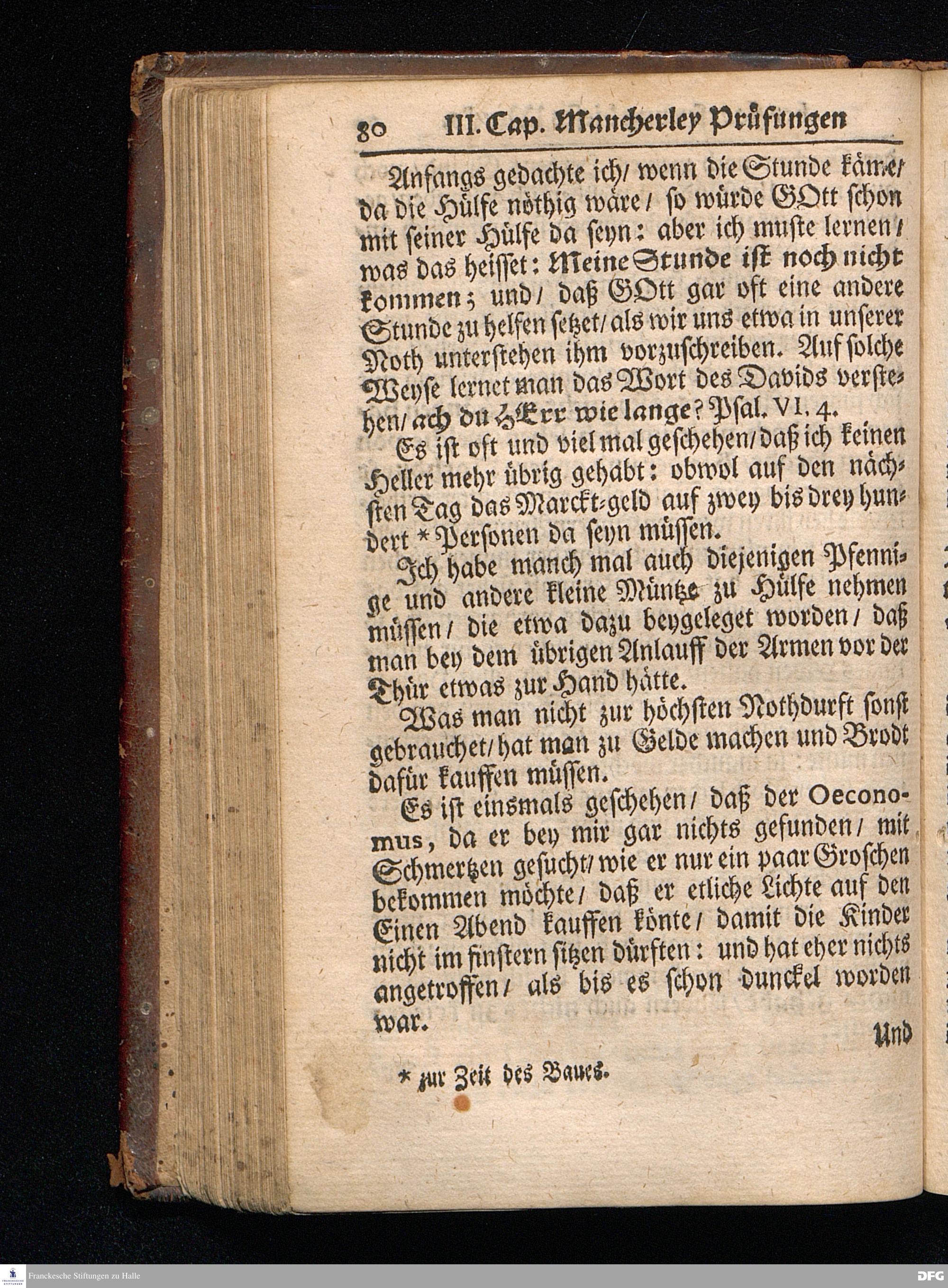 Segens=volle Fußstapfen des noch lebenden und waltenden liebreichen und getreuen GOttes / Zur Beschämung des Unglaubens und Stärckung des Glaubens entdecket durch eine wahrhafte und umständliche Nachricht von dem Wäysen=Hause und übrigen Anstalten zu Glaucha vor Halle: Welche im Jahr 1701. zum Druck befördert; ietzo aber zum dritten mal ediret / und bis auf gegenwärtiges Jahr fortgesetzet von August.Herm.Francken / S.Theol.Prof.und Past. Halle / in Verlegung des Wäysen=hauses / MDCCIX.