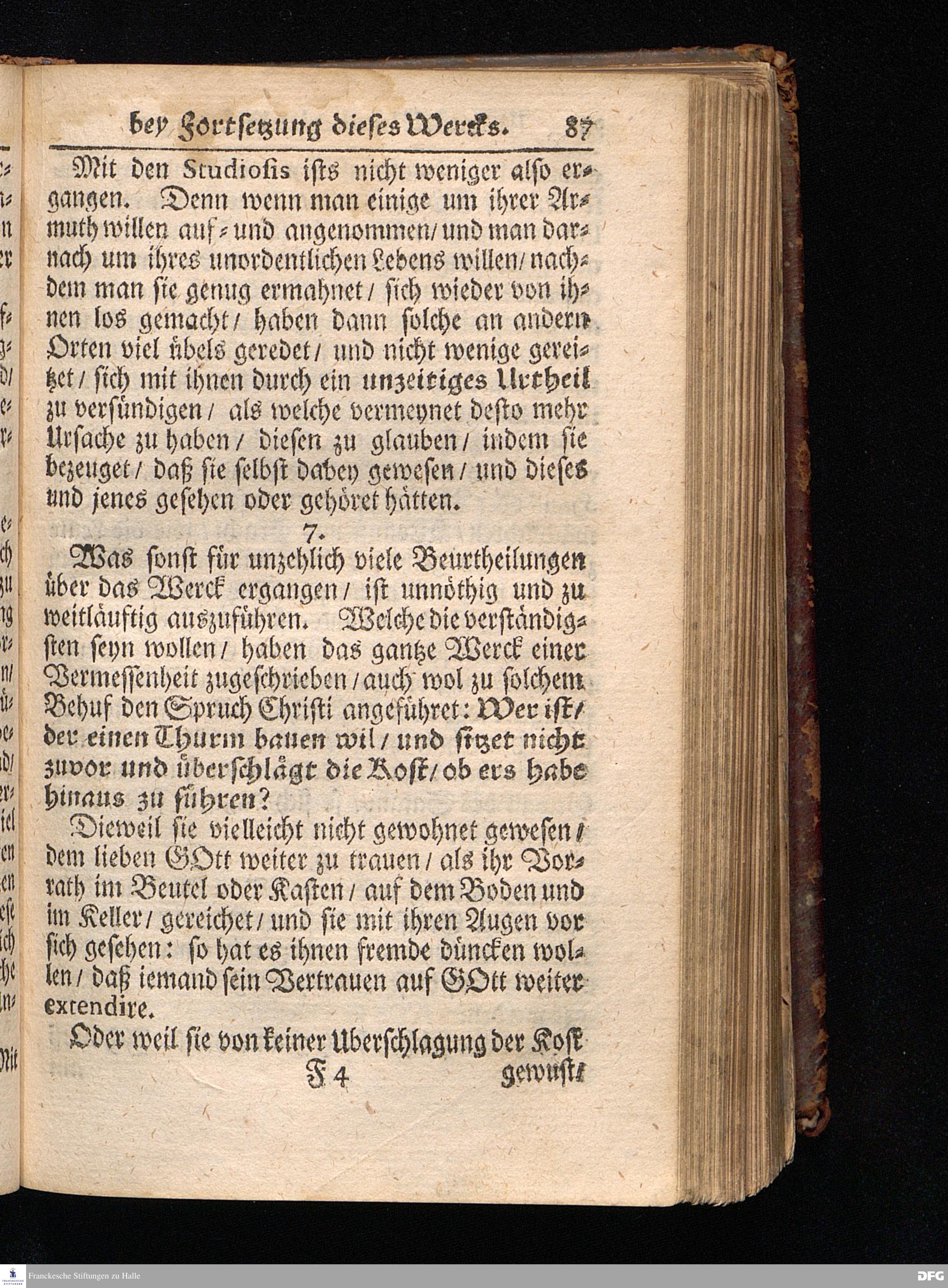 Segens=volle Fußstapfen des noch lebenden und waltenden liebreichen und getreuen GOttes / Zur Beschämung des Unglaubens und Stärckung des Glaubens entdecket durch eine wahrhafte und umständliche Nachricht von dem Wäysen=Hause und übrigen Anstalten zu Glaucha vor Halle: Welche im Jahr 1701. zum Druck befördert; ietzo aber zum dritten mal ediret / und bis auf gegenwärtiges Jahr fortgesetzet von August.Herm.Francken / S.Theol.Prof.und Past. Halle / in Verlegung des Wäysen=hauses / MDCCIX.