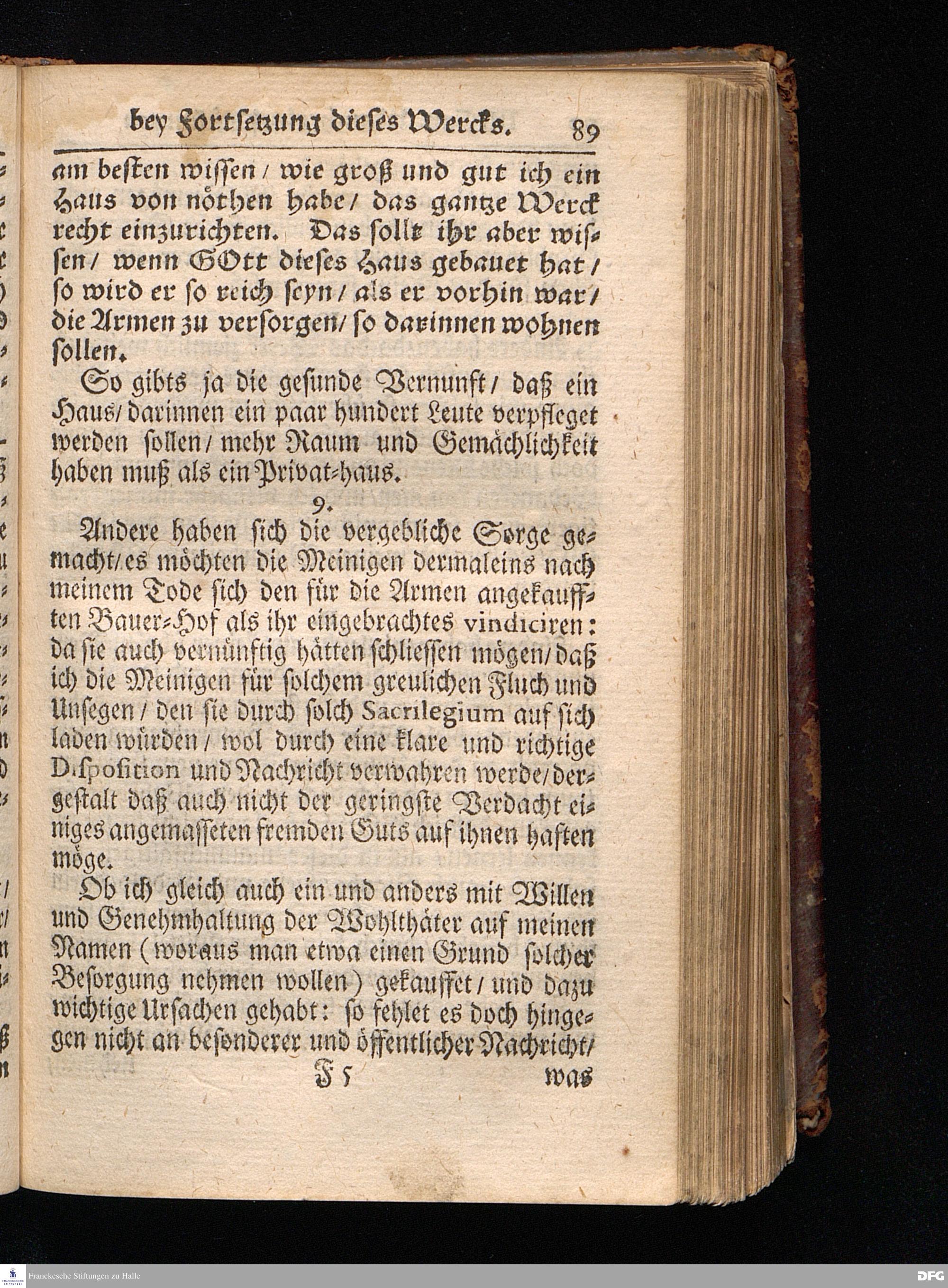 Segens=volle Fußstapfen des noch lebenden und waltenden liebreichen und getreuen GOttes / Zur Beschämung des Unglaubens und Stärckung des Glaubens entdecket durch eine wahrhafte und umständliche Nachricht von dem Wäysen=Hause und übrigen Anstalten zu Glaucha vor Halle: Welche im Jahr 1701. zum Druck befördert; ietzo aber zum dritten mal ediret / und bis auf gegenwärtiges Jahr fortgesetzet von August.Herm.Francken / S.Theol.Prof.und Past. Halle / in Verlegung des Wäysen=hauses / MDCCIX.