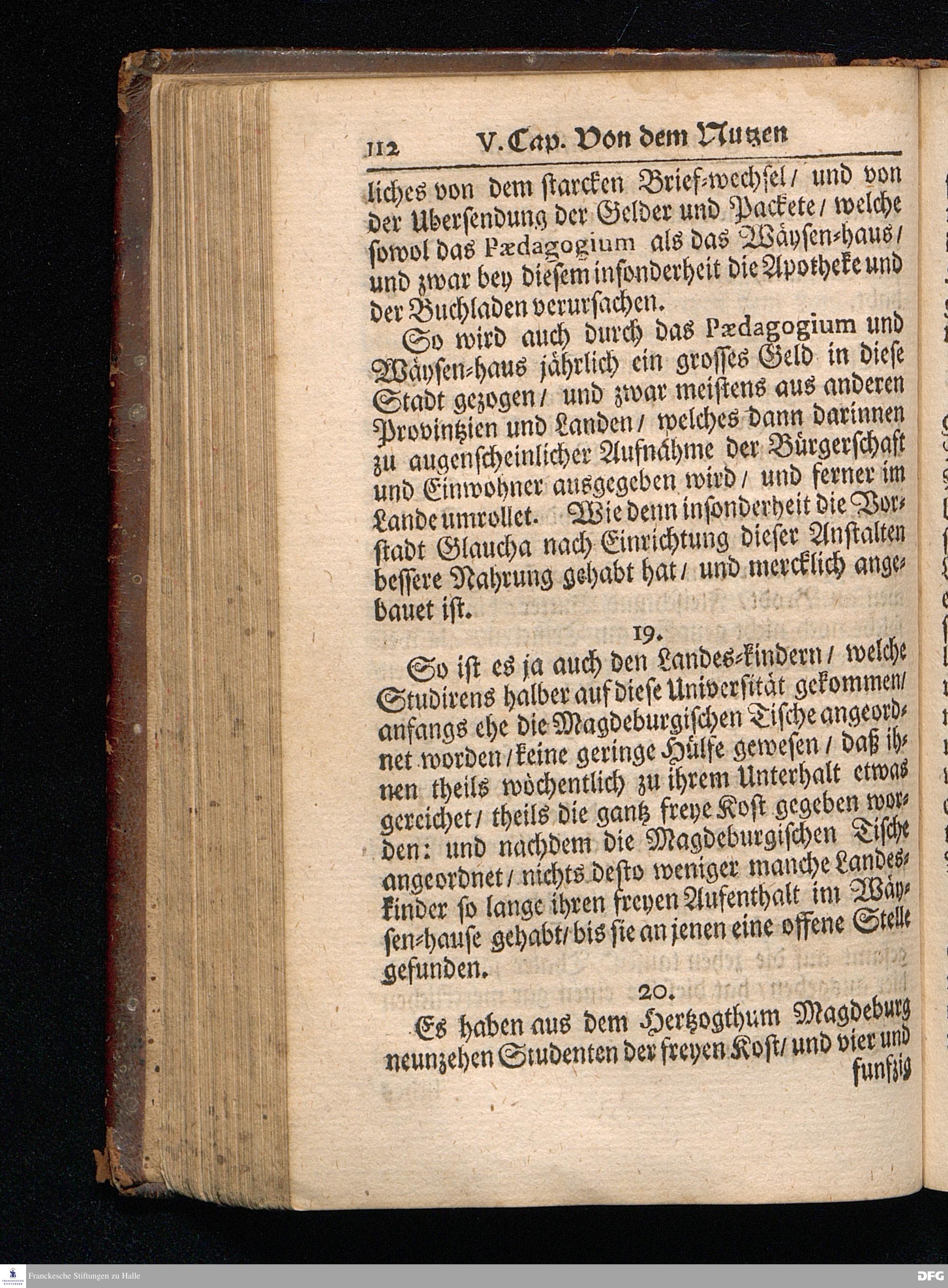 Segens=volle Fußstapfen des noch lebenden und waltenden liebreichen und getreuen GOttes / Zur Beschämung des Unglaubens und Stärckung des Glaubens entdecket durch eine wahrhafte und umständliche Nachricht von dem Wäysen=Hause und übrigen Anstalten zu Glaucha vor Halle: Welche im Jahr 1701. zum Druck befördert; ietzo aber zum dritten mal ediret / und bis auf gegenwärtiges Jahr fortgesetzet von August.Herm.Francken / S.Theol.Prof.und Past. Halle / in Verlegung des Wäysen=hauses / MDCCIX.