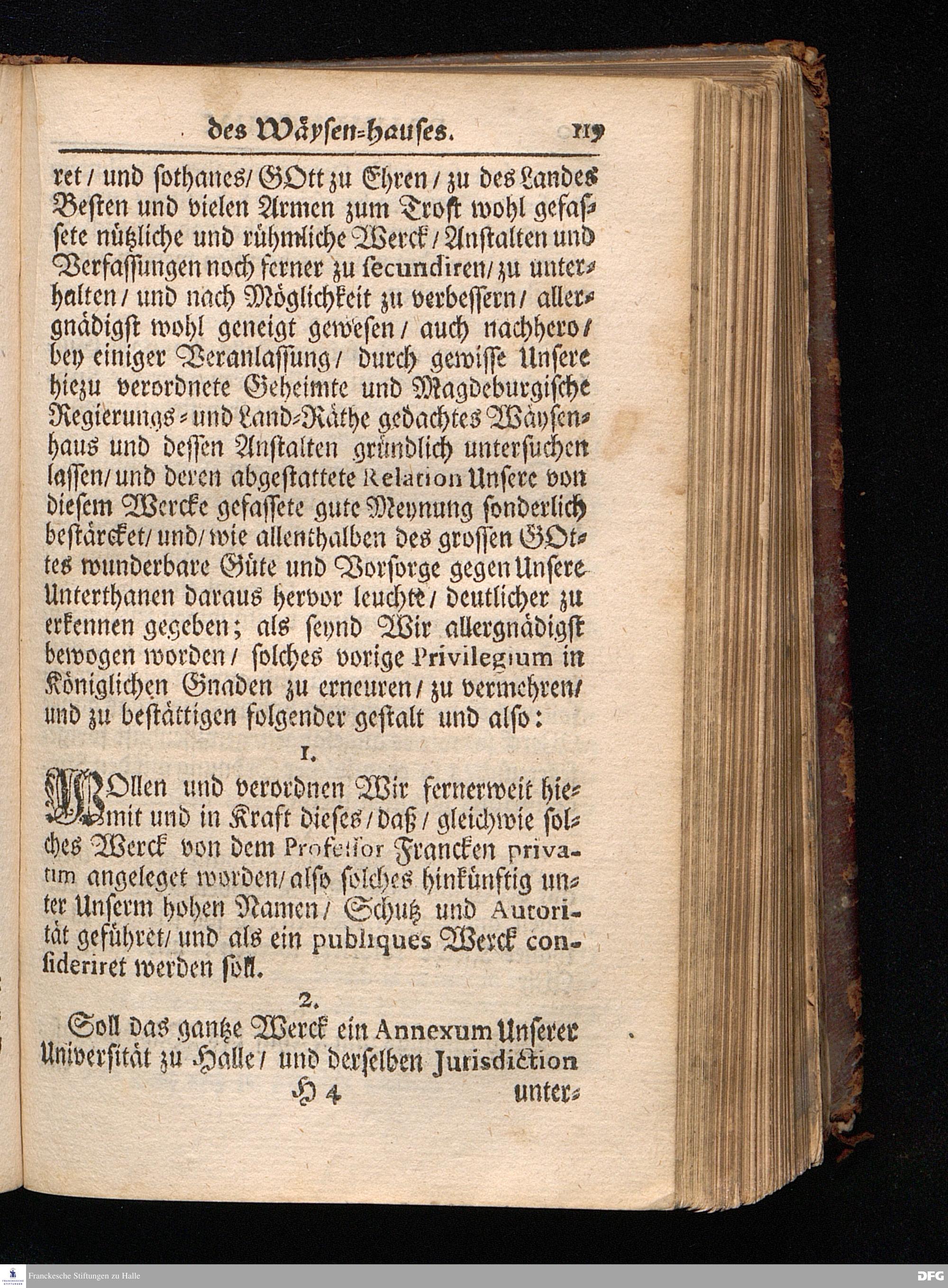 Segens=volle Fußstapfen des noch lebenden und waltenden liebreichen und getreuen GOttes / Zur Beschämung des Unglaubens und Stärckung des Glaubens entdecket durch eine wahrhafte und umständliche Nachricht von dem Wäysen=Hause und übrigen Anstalten zu Glaucha vor Halle: Welche im Jahr 1701. zum Druck befördert; ietzo aber zum dritten mal ediret / und bis auf gegenwärtiges Jahr fortgesetzet von August.Herm.Francken / S.Theol.Prof.und Past. Halle / in Verlegung des Wäysen=hauses / MDCCIX.