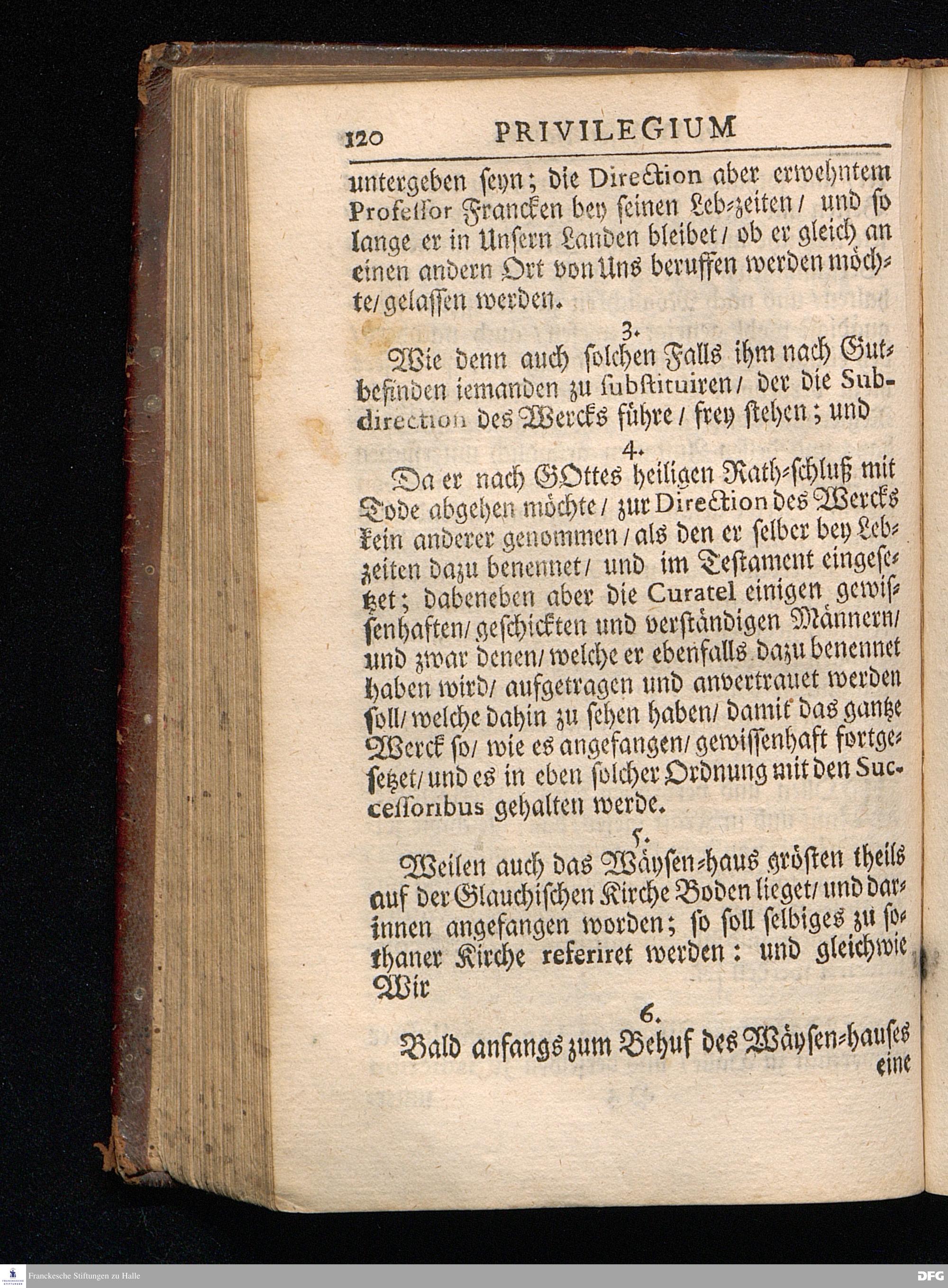 Segens=volle Fußstapfen des noch lebenden und waltenden liebreichen und getreuen GOttes / Zur Beschämung des Unglaubens und Stärckung des Glaubens entdecket durch eine wahrhafte und umständliche Nachricht von dem Wäysen=Hause und übrigen Anstalten zu Glaucha vor Halle: Welche im Jahr 1701. zum Druck befördert; ietzo aber zum dritten mal ediret / und bis auf gegenwärtiges Jahr fortgesetzet von August.Herm.Francken / S.Theol.Prof.und Past. Halle / in Verlegung des Wäysen=hauses / MDCCIX.