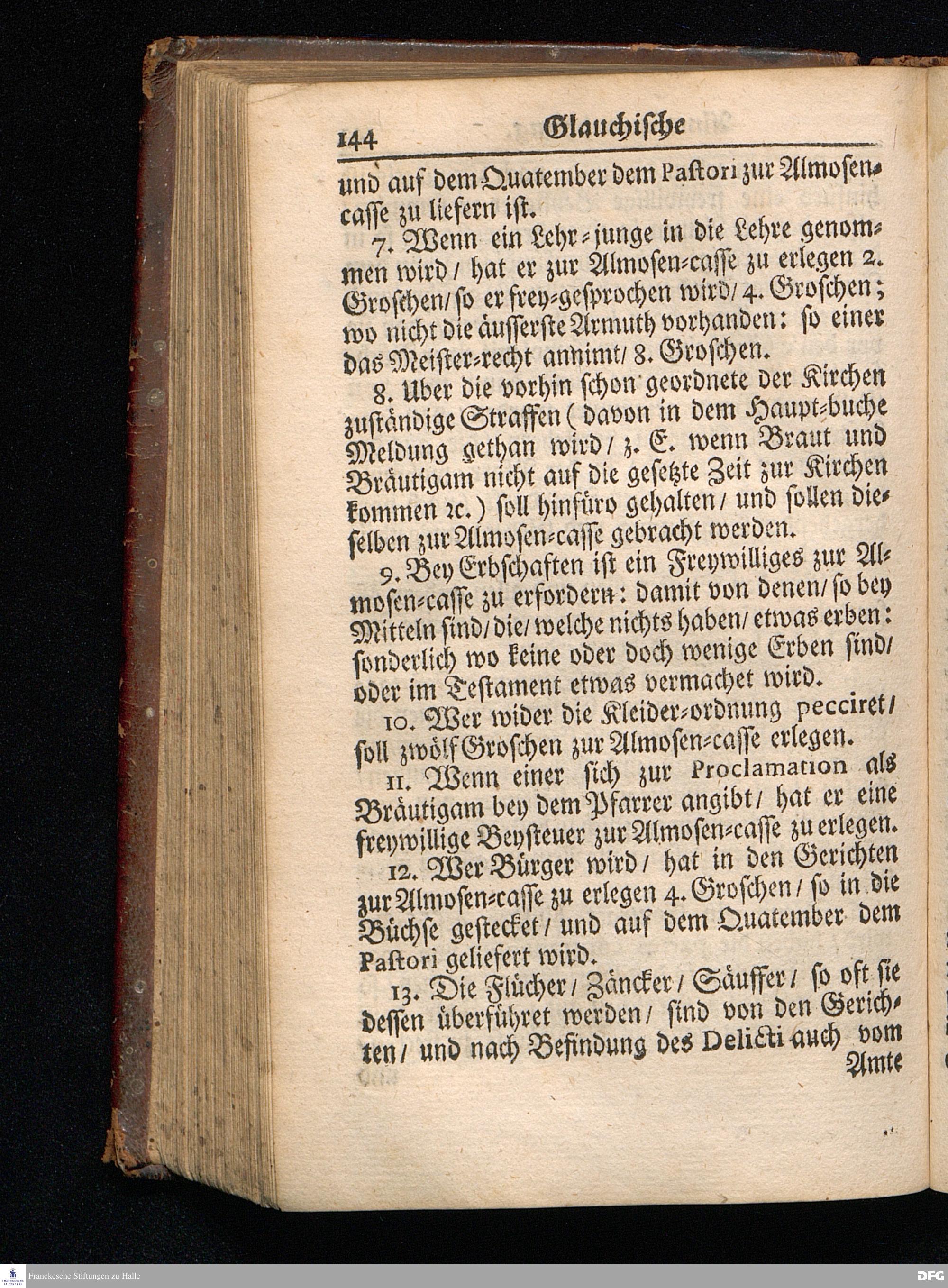 Segens=volle Fußstapfen des noch lebenden und waltenden liebreichen und getreuen GOttes / Zur Beschämung des Unglaubens und Stärckung des Glaubens entdecket durch eine wahrhafte und umständliche Nachricht von dem Wäysen=Hause und übrigen Anstalten zu Glaucha vor Halle: Welche im Jahr 1701. zum Druck befördert; ietzo aber zum dritten mal ediret / und bis auf gegenwärtiges Jahr fortgesetzet von August.Herm.Francken / S.Theol.Prof.und Past. Halle / in Verlegung des Wäysen=hauses / MDCCIX.