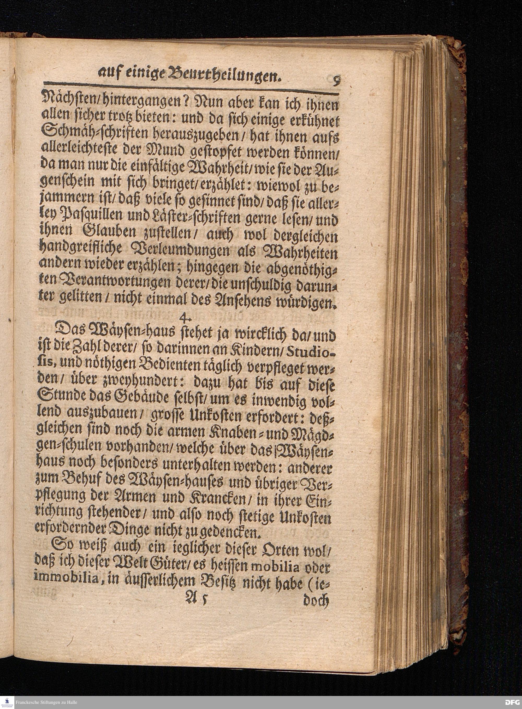 Segens=volle Fußstapfen des noch lebenden und waltenden liebreichen und getreuen GOttes / Zur Beschämung des Unglaubens und Stärckung des Glaubens entdecket durch eine wahrhafte und umständliche Nachricht von dem Wäysen=Hause und übrigen Anstalten zu Glaucha vor Halle: Welche im Jahr 1701. zum Druck befördert; ietzo aber zum dritten mal ediret / und bis auf gegenwärtiges Jahr fortgesetzet von August.Herm.Francken / S.Theol.Prof.und Past. Halle / in Verlegung des Wäysen=hauses / MDCCIX.