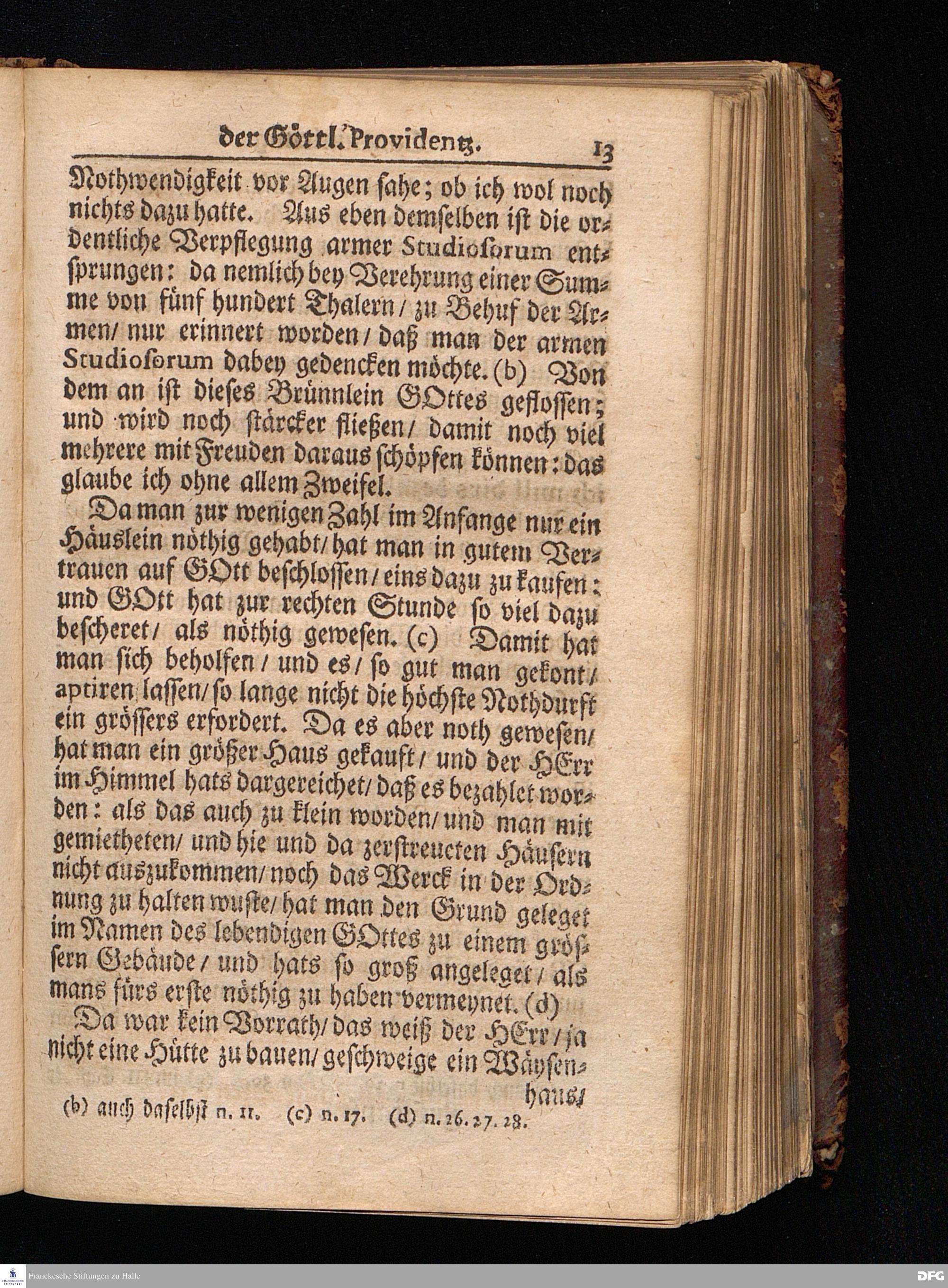 Segens=volle Fußstapfen des noch lebenden und waltenden liebreichen und getreuen GOttes / Zur Beschämung des Unglaubens und Stärckung des Glaubens entdecket durch eine wahrhafte und umständliche Nachricht von dem Wäysen=Hause und übrigen Anstalten zu Glaucha vor Halle: Welche im Jahr 1701. zum Druck befördert; ietzo aber zum dritten mal ediret / und bis auf gegenwärtiges Jahr fortgesetzet von August.Herm.Francken / S.Theol.Prof.und Past. Halle / in Verlegung des Wäysen=hauses / MDCCIX.