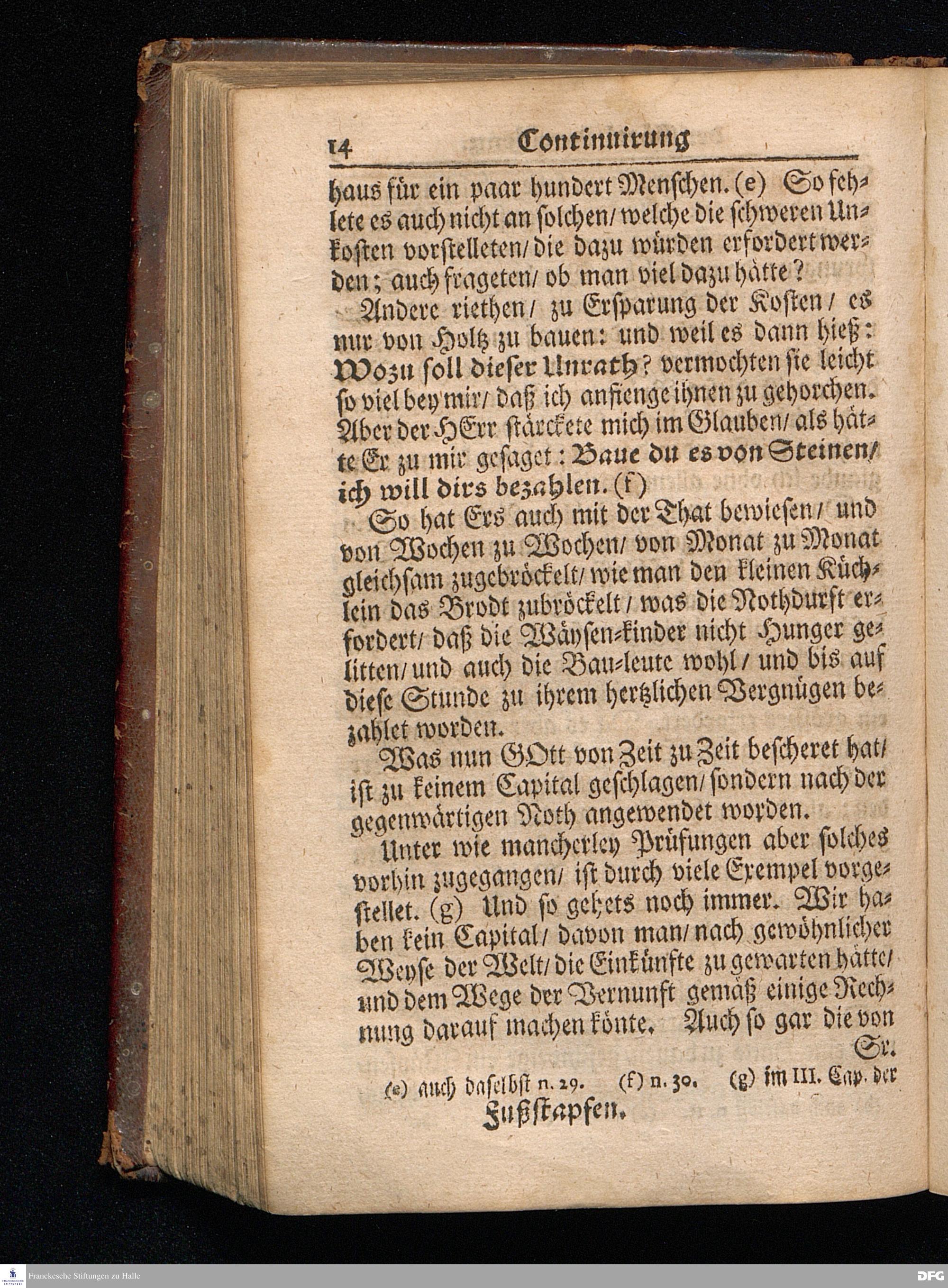 Segens=volle Fußstapfen des noch lebenden und waltenden liebreichen und getreuen GOttes / Zur Beschämung des Unglaubens und Stärckung des Glaubens entdecket durch eine wahrhafte und umständliche Nachricht von dem Wäysen=Hause und übrigen Anstalten zu Glaucha vor Halle: Welche im Jahr 1701. zum Druck befördert; ietzo aber zum dritten mal ediret / und bis auf gegenwärtiges Jahr fortgesetzet von August.Herm.Francken / S.Theol.Prof.und Past. Halle / in Verlegung des Wäysen=hauses / MDCCIX.