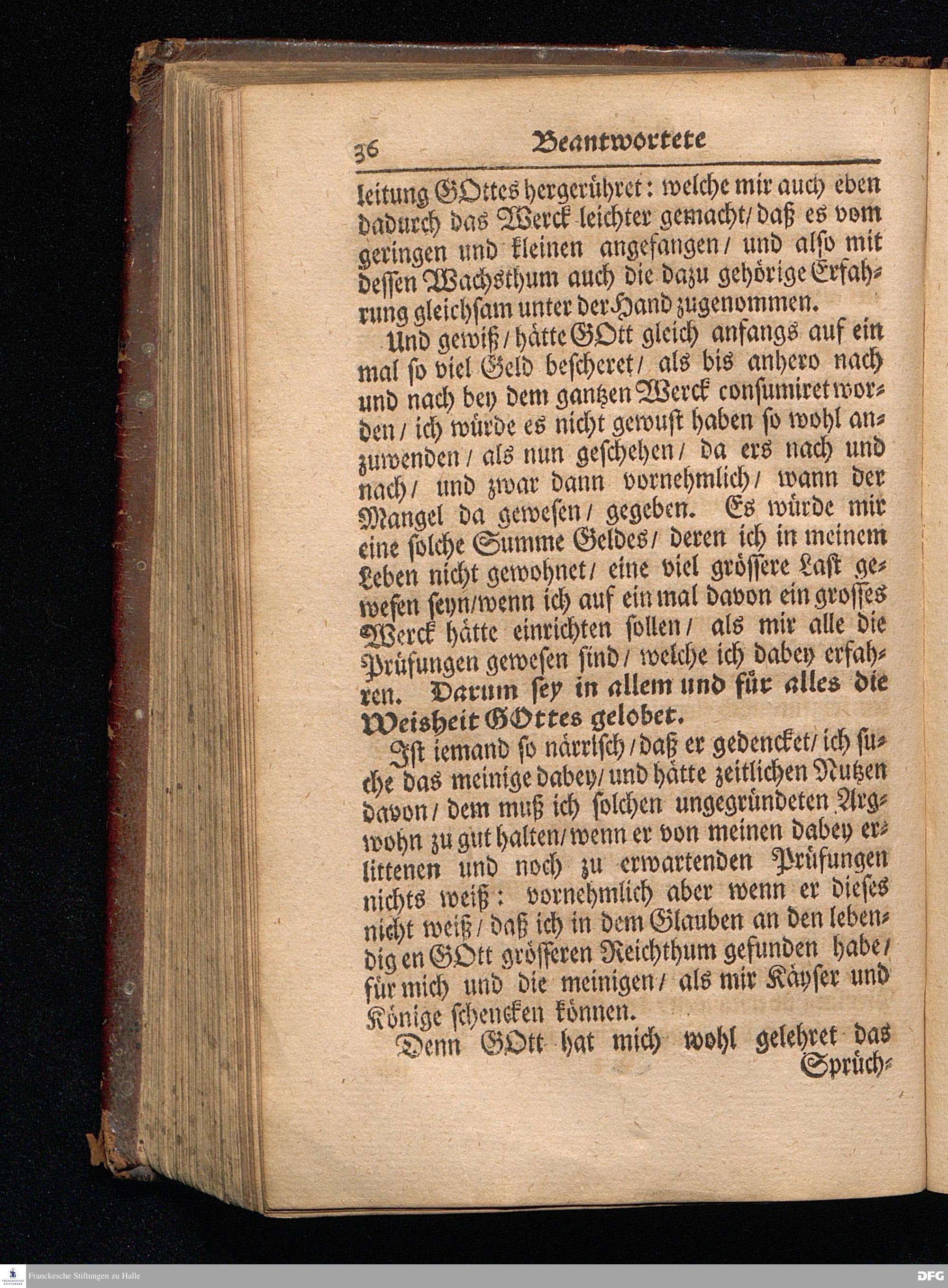 Segens=volle Fußstapfen des noch lebenden und waltenden liebreichen und getreuen GOttes / Zur Beschämung des Unglaubens und Stärckung des Glaubens entdecket durch eine wahrhafte und umständliche Nachricht von dem Wäysen=Hause und übrigen Anstalten zu Glaucha vor Halle: Welche im Jahr 1701. zum Druck befördert; ietzo aber zum dritten mal ediret / und bis auf gegenwärtiges Jahr fortgesetzet von August.Herm.Francken / S.Theol.Prof.und Past. Halle / in Verlegung des Wäysen=hauses / MDCCIX.