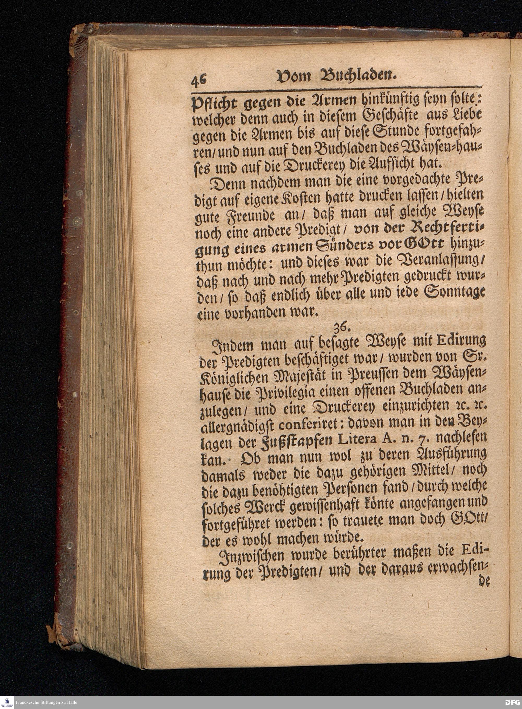 Segens=volle Fußstapfen des noch lebenden und waltenden liebreichen und getreuen GOttes / Zur Beschämung des Unglaubens und Stärckung des Glaubens entdecket durch eine wahrhafte und umständliche Nachricht von dem Wäysen=Hause und übrigen Anstalten zu Glaucha vor Halle: Welche im Jahr 1701. zum Druck befördert; ietzo aber zum dritten mal ediret / und bis auf gegenwärtiges Jahr fortgesetzet von August.Herm.Francken / S.Theol.Prof.und Past. Halle / in Verlegung des Wäysen=hauses / MDCCIX.