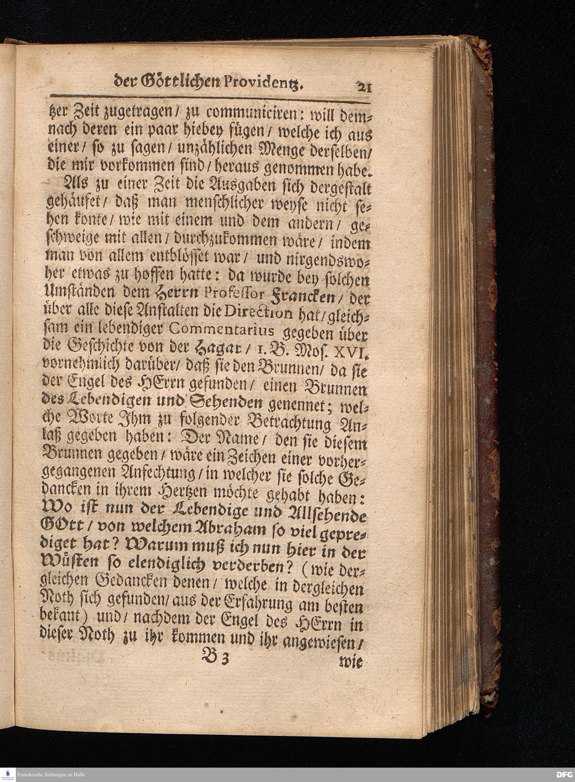 Segens=volle Fußstapfen des noch lebenden und waltenden liebreichen und getreuen GOttes / Zur Beschämung des Unglaubens und Stärckung des Glaubens entdecket durch eine wahrhafte und umständliche Nachricht von dem Wäysen=Hause und übrigen Anstalten zu Glaucha vor Halle: Welche im Jahr 1701. zum Druck befördert; ietzo aber zum dritten mal ediret / und bis auf gegenwärtiges Jahr fortgesetzet von August.Herm.Francken / S.Theol.Prof.und Past. Halle / in Verlegung des Wäysen=hauses / MDCCIX.