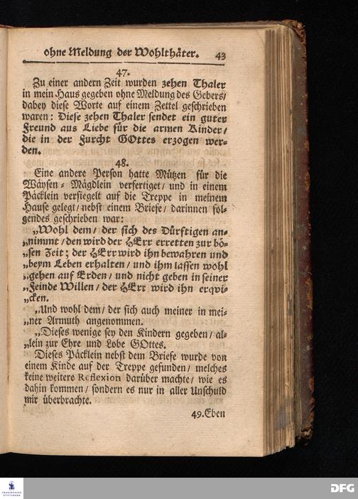 Segens=volle Fußstapfen des noch lebenden und waltenden liebreichen und getreuen GOttes / Zur Beschämung des Unglaubens und Stärckung des Glaubens entdecket durch eine wahrhafte und umständliche Nachricht von dem Wäysen=Hause und übrigen Anstalten zu Glaucha vor Halle: Welche im Jahr 1701. zum Druck befördert; ietzo aber zum dritten mal ediret / und bis auf gegenwärtiges Jahr fortgesetzet von August.Herm.Francken / S.Theol.Prof.und Past. Halle / in Verlegung des Wäysen=hauses / MDCCIX.