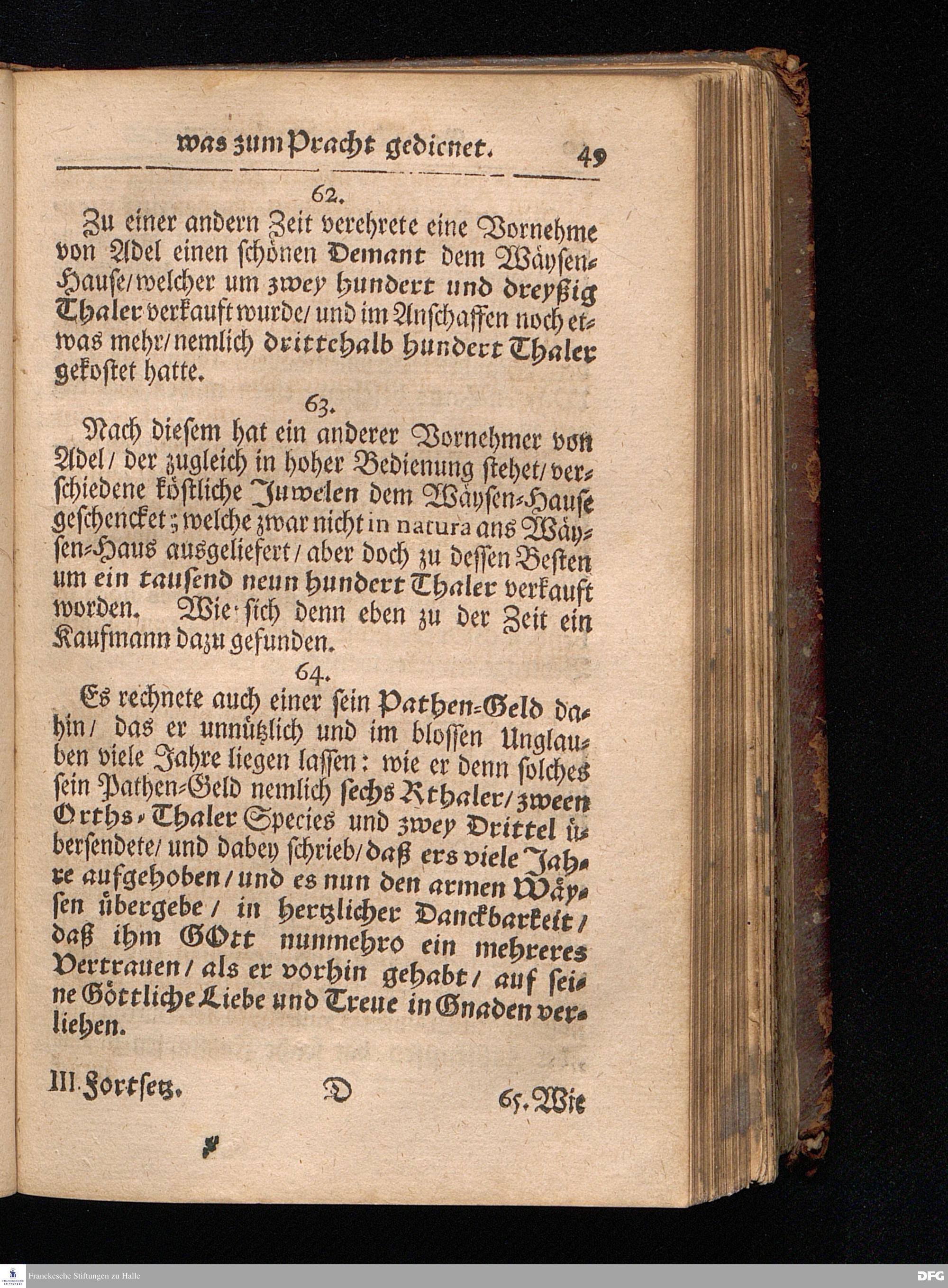 Segens=volle Fußstapfen des noch lebenden und waltenden liebreichen und getreuen GOttes / Zur Beschämung des Unglaubens und Stärckung des Glaubens entdecket durch eine wahrhafte und umständliche Nachricht von dem Wäysen=Hause und übrigen Anstalten zu Glaucha vor Halle: Welche im Jahr 1701. zum Druck befördert; ietzo aber zum dritten mal ediret / und bis auf gegenwärtiges Jahr fortgesetzet von August.Herm.Francken / S.Theol.Prof.und Past. Halle / in Verlegung des Wäysen=hauses / MDCCIX.