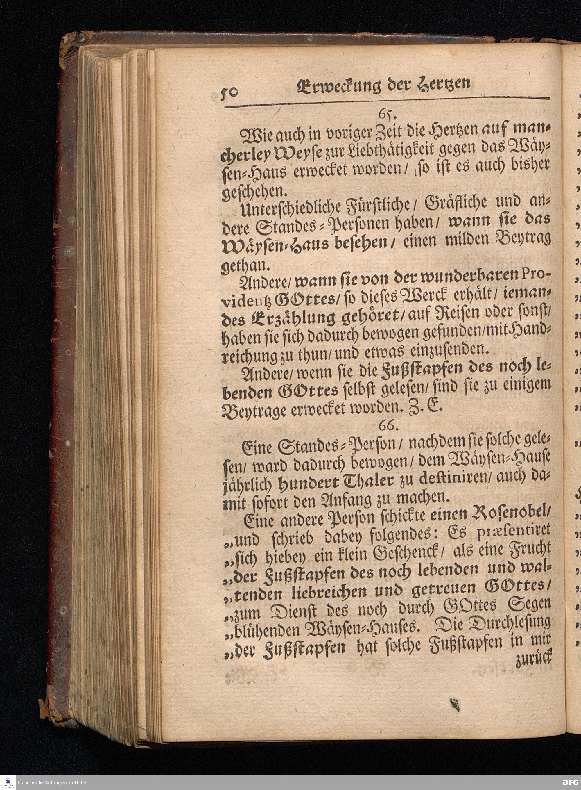 Segens=volle Fußstapfen des noch lebenden und waltenden liebreichen und getreuen GOttes / Zur Beschämung des Unglaubens und Stärckung des Glaubens entdecket durch eine wahrhafte und umständliche Nachricht von dem Wäysen=Hause und übrigen Anstalten zu Glaucha vor Halle: Welche im Jahr 1701. zum Druck befördert; ietzo aber zum dritten mal ediret / und bis auf gegenwärtiges Jahr fortgesetzet von August.Herm.Francken / S.Theol.Prof.und Past. Halle / in Verlegung des Wäysen=hauses / MDCCIX.