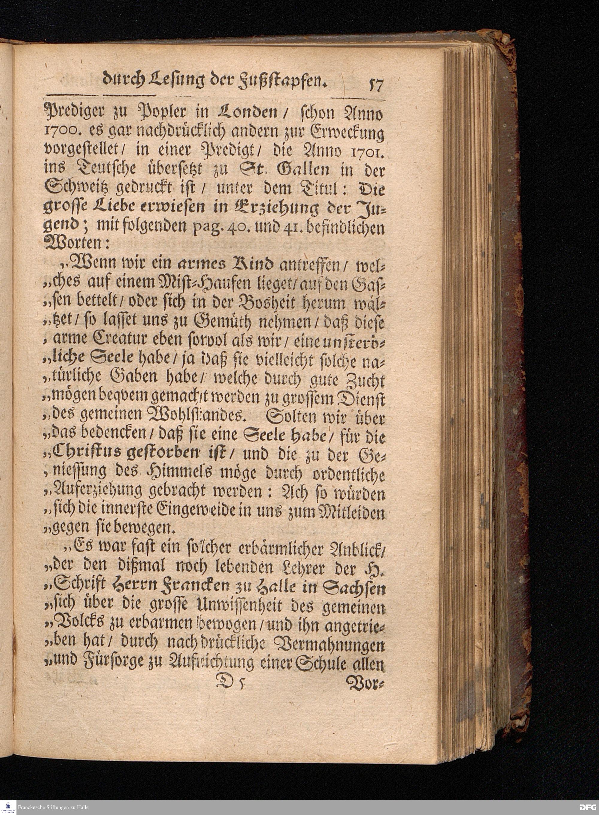 Segens=volle Fußstapfen des noch lebenden und waltenden liebreichen und getreuen GOttes / Zur Beschämung des Unglaubens und Stärckung des Glaubens entdecket durch eine wahrhafte und umständliche Nachricht von dem Wäysen=Hause und übrigen Anstalten zu Glaucha vor Halle: Welche im Jahr 1701. zum Druck befördert; ietzo aber zum dritten mal ediret / und bis auf gegenwärtiges Jahr fortgesetzet von August.Herm.Francken / S.Theol.Prof.und Past. Halle / in Verlegung des Wäysen=hauses / MDCCIX.