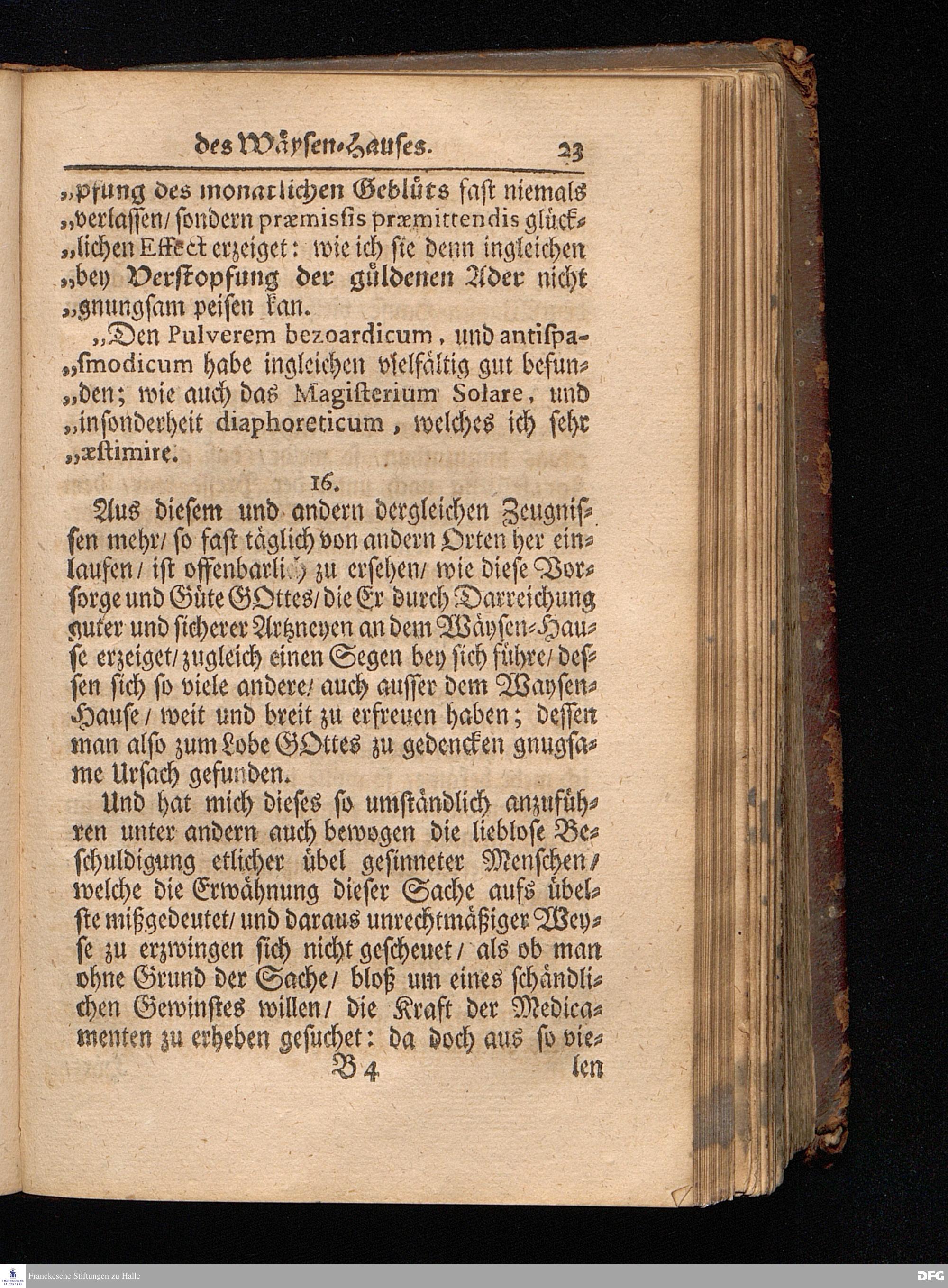Segens=volle Fußstapfen des noch lebenden und waltenden liebreichen und getreuen GOttes / Zur Beschämung des Unglaubens und Stärckung des Glaubens entdecket durch eine wahrhafte und umständliche Nachricht von dem Wäysen=Hause und übrigen Anstalten zu Glaucha vor Halle: Welche im Jahr 1701. zum Druck befördert; ietzo aber zum dritten mal ediret / und bis auf gegenwärtiges Jahr fortgesetzet von August.Herm.Francken / S.Theol.Prof.und Past. Halle / in Verlegung des Wäysen=hauses / MDCCIX.