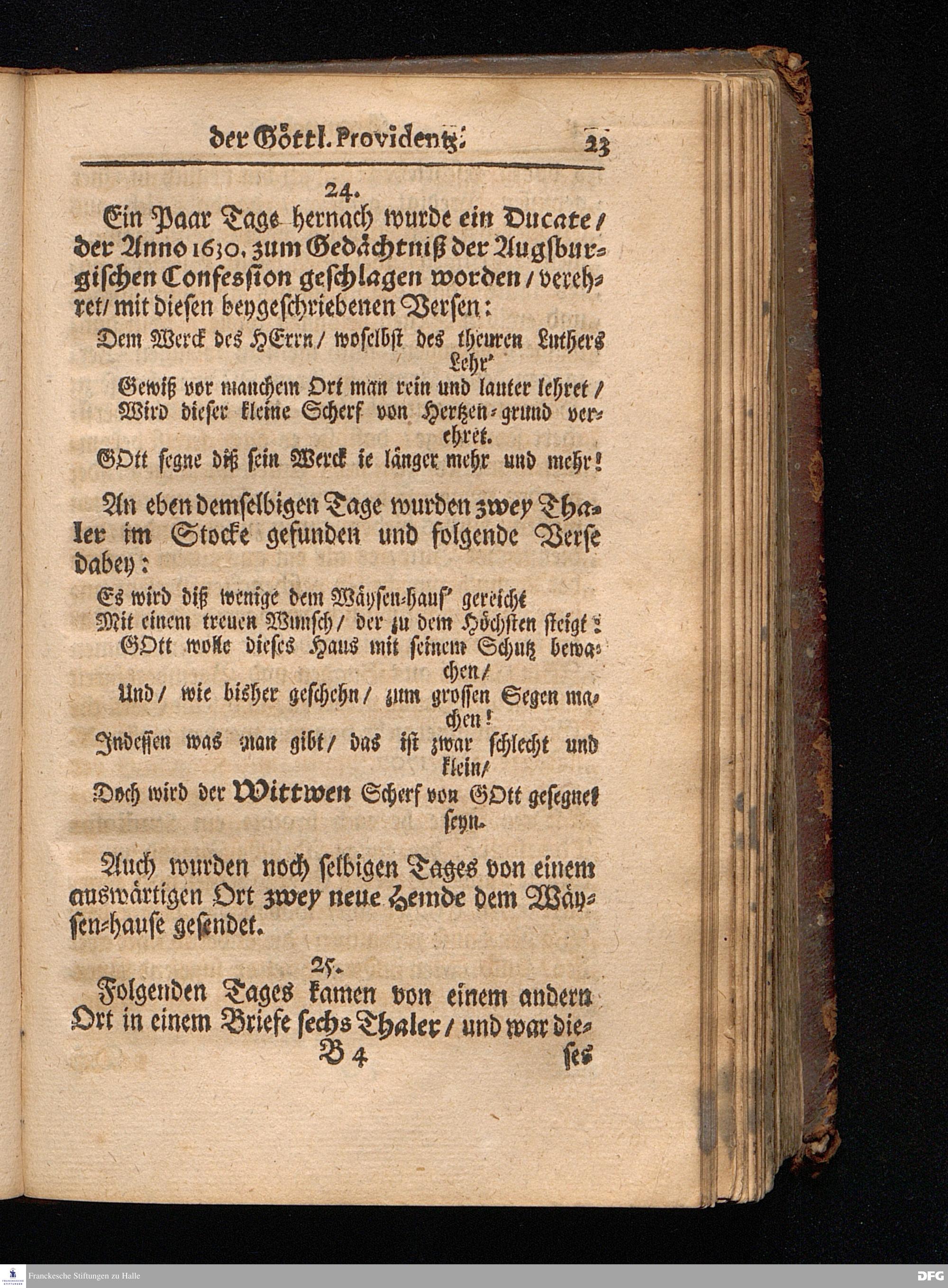 Segens=volle Fußstapfen des noch lebenden und waltenden liebreichen und getreuen GOttes / Zur Beschämung des Unglaubens und Stärckung des Glaubens entdecket durch eine wahrhafte und umständliche Nachricht von dem Wäysen=Hause und übrigen Anstalten zu Glaucha vor Halle: Welche im Jahr 1701. zum Druck befördert; ietzo aber zum dritten mal ediret / und bis auf gegenwärtiges Jahr fortgesetzet von August.Herm.Francken / S.Theol.Prof.und Past. Halle / in Verlegung des Wäysen=hauses / MDCCIX.