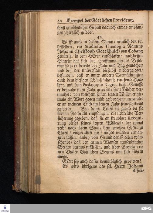 Segens=volle Fußstapfen des noch lebenden und waltenden liebreichen und getreuen GOttes / Zur Beschämung des Unglaubens und Stärckung des Glaubens entdecket durch eine wahrhafte und umständliche Nachricht von dem Wäysen=Hause und übrigen Anstalten zu Glaucha vor Halle: Welche im Jahr 1701. zum Druck befördert; ietzo aber zum dritten mal ediret / und bis auf gegenwärtiges Jahr fortgesetzet von August.Herm.Francken / S.Theol.Prof.und Past. Halle / in Verlegung des Wäysen=hauses / MDCCIX.