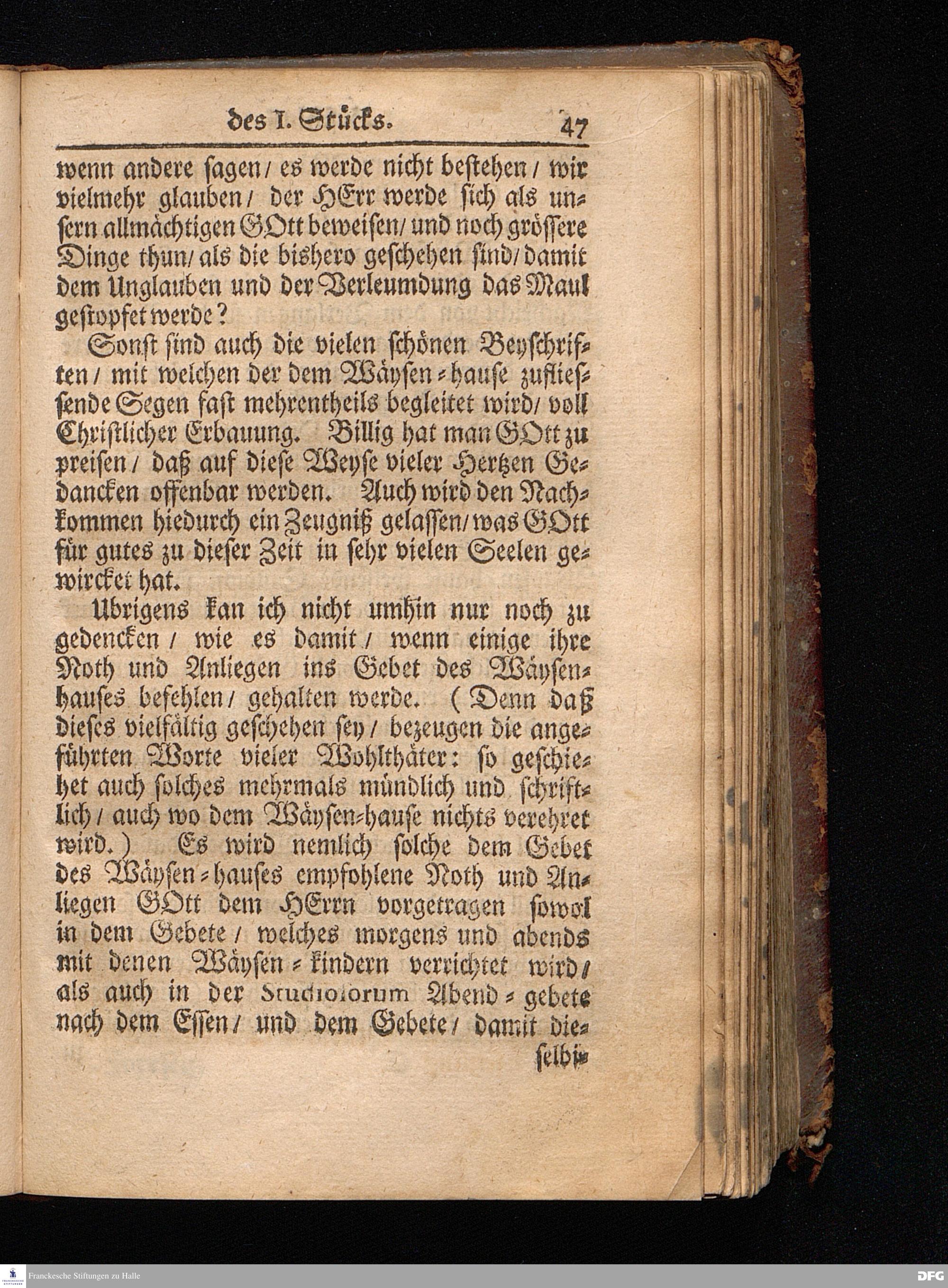 Segens=volle Fußstapfen des noch lebenden und waltenden liebreichen und getreuen GOttes / Zur Beschämung des Unglaubens und Stärckung des Glaubens entdecket durch eine wahrhafte und umständliche Nachricht von dem Wäysen=Hause und übrigen Anstalten zu Glaucha vor Halle: Welche im Jahr 1701. zum Druck befördert; ietzo aber zum dritten mal ediret / und bis auf gegenwärtiges Jahr fortgesetzet von August.Herm.Francken / S.Theol.Prof.und Past. Halle / in Verlegung des Wäysen=hauses / MDCCIX.