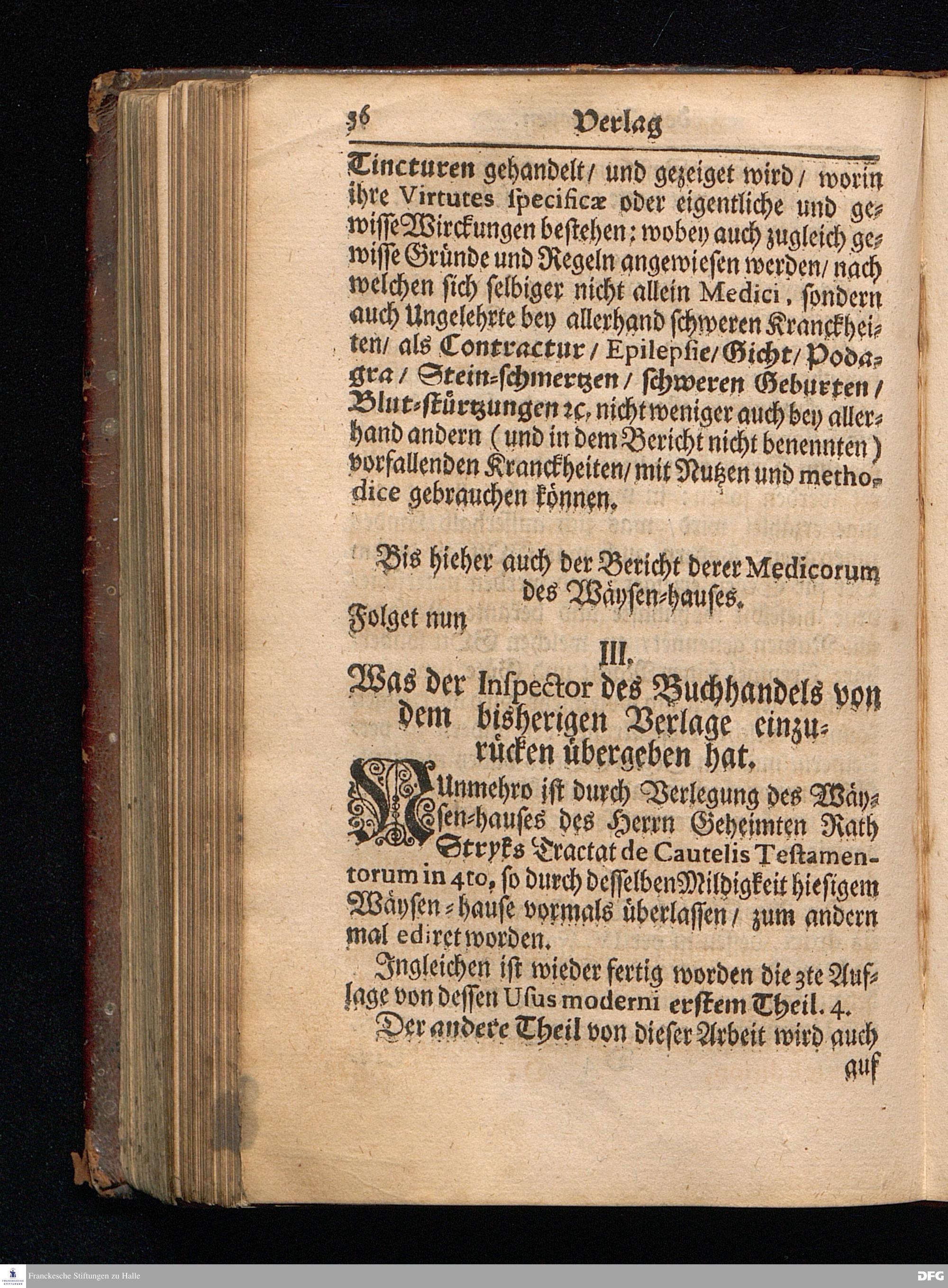 Segens=volle Fußstapfen des noch lebenden und waltenden liebreichen und getreuen GOttes / Zur Beschämung des Unglaubens und Stärckung des Glaubens entdecket durch eine wahrhafte und umständliche Nachricht von dem Wäysen=Hause und übrigen Anstalten zu Glaucha vor Halle: Welche im Jahr 1701. zum Druck befördert; ietzo aber zum dritten mal ediret / und bis auf gegenwärtiges Jahr fortgesetzet von August.Herm.Francken / S.Theol.Prof.und Past. Halle / in Verlegung des Wäysen=hauses / MDCCIX.