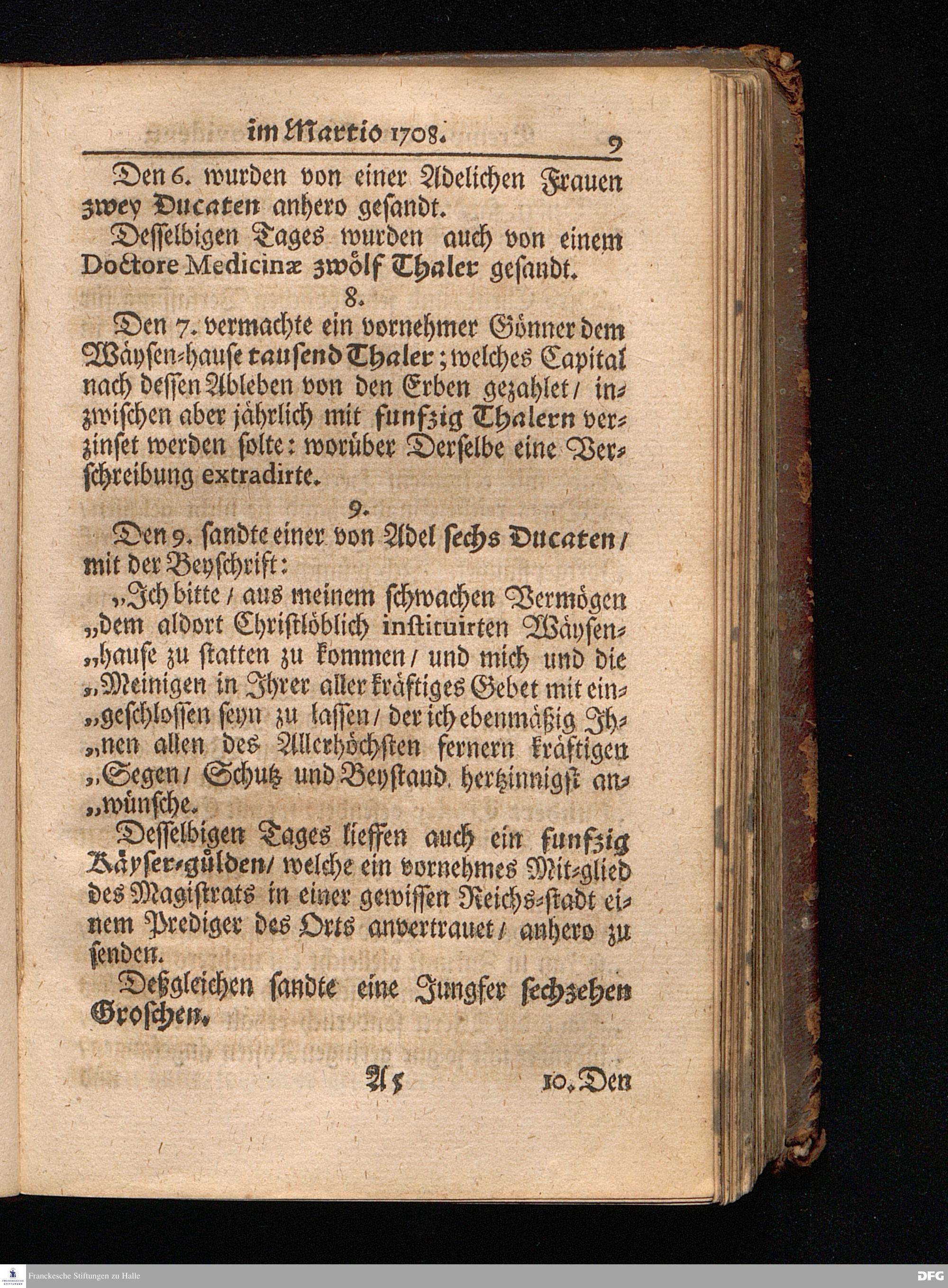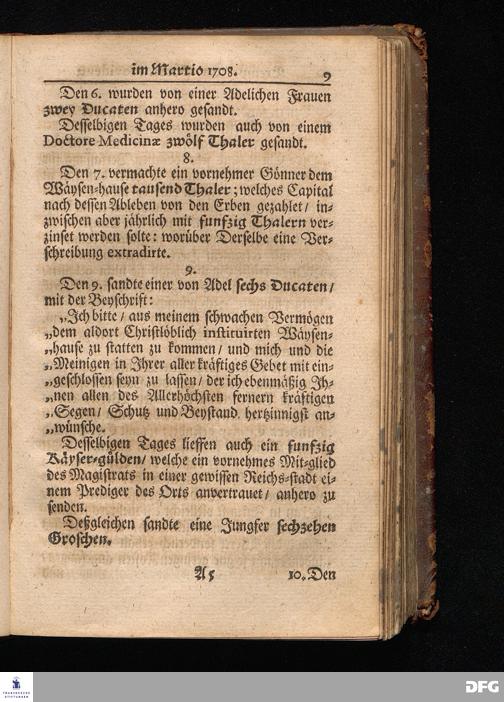 Segens=volle Fußstapfen des noch lebenden und waltenden liebreichen und getreuen GOttes / Zur Beschämung des Unglaubens und Stärckung des Glaubens entdecket durch eine wahrhafte und umständliche Nachricht von dem Wäysen=Hause und übrigen Anstalten zu Glaucha vor Halle: Welche im Jahr 1701. zum Druck befördert; ietzo aber zum dritten mal ediret / und bis auf gegenwärtiges Jahr fortgesetzet von August.Herm.Francken / S.Theol.Prof.und Past. Halle / in Verlegung des Wäysen=hauses / MDCCIX.