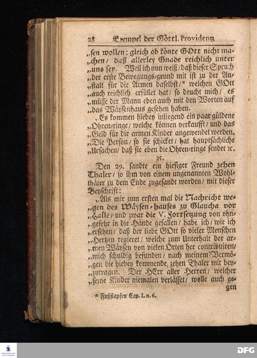Segens=volle Fußstapfen des noch lebenden und waltenden liebreichen und getreuen GOttes / Zur Beschämung des Unglaubens und Stärckung des Glaubens entdecket durch eine wahrhafte und umständliche Nachricht von dem Wäysen=Hause und übrigen Anstalten zu Glaucha vor Halle: Welche im Jahr 1701. zum Druck befördert; ietzo aber zum dritten mal ediret / und bis auf gegenwärtiges Jahr fortgesetzet von August.Herm.Francken / S.Theol.Prof.und Past. Halle / in Verlegung des Wäysen=hauses / MDCCIX.