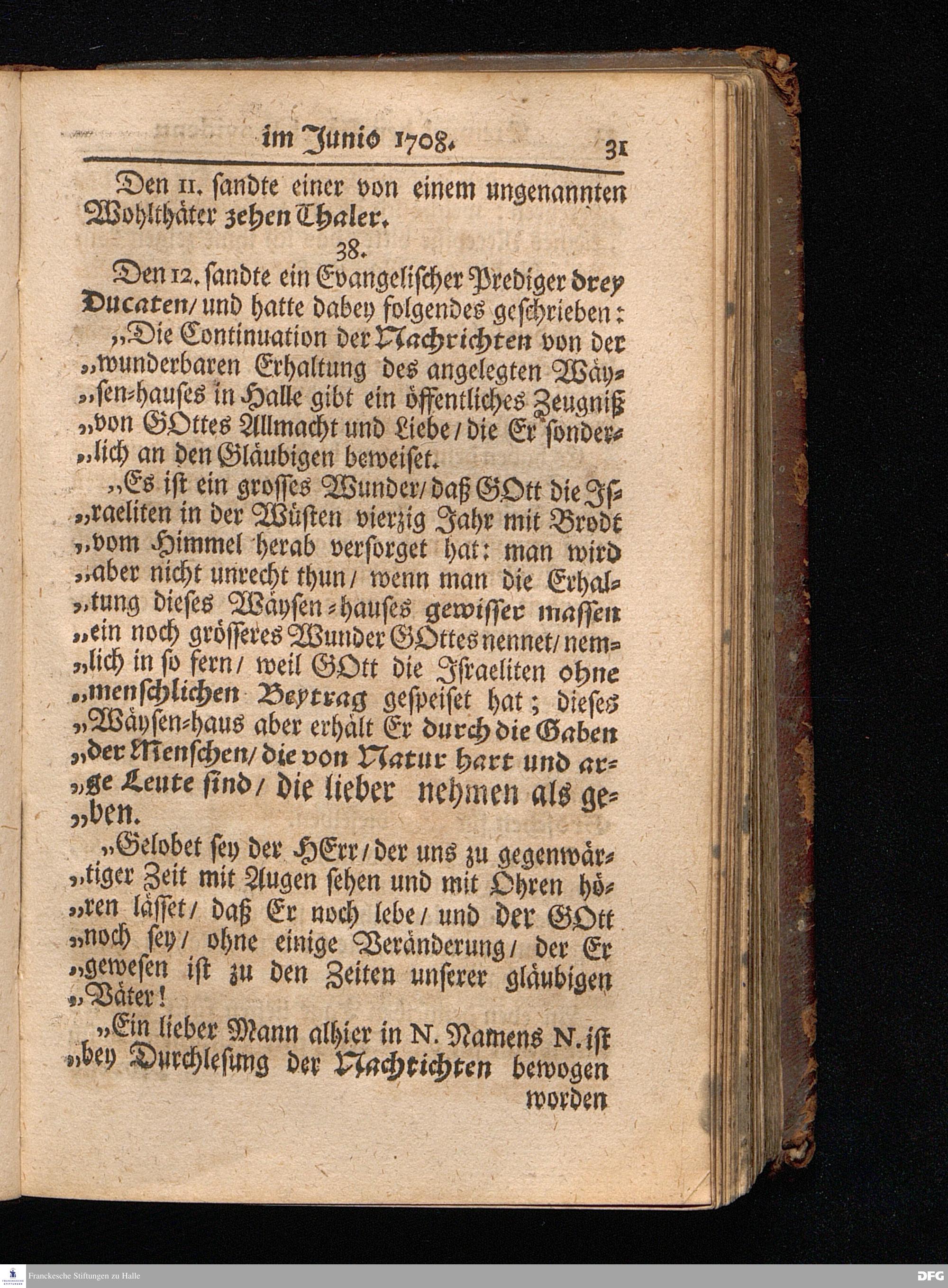 Segens=volle Fußstapfen des noch lebenden und waltenden liebreichen und getreuen GOttes / Zur Beschämung des Unglaubens und Stärckung des Glaubens entdecket durch eine wahrhafte und umständliche Nachricht von dem Wäysen=Hause und übrigen Anstalten zu Glaucha vor Halle: Welche im Jahr 1701. zum Druck befördert; ietzo aber zum dritten mal ediret / und bis auf gegenwärtiges Jahr fortgesetzet von August.Herm.Francken / S.Theol.Prof.und Past. Halle / in Verlegung des Wäysen=hauses / MDCCIX.